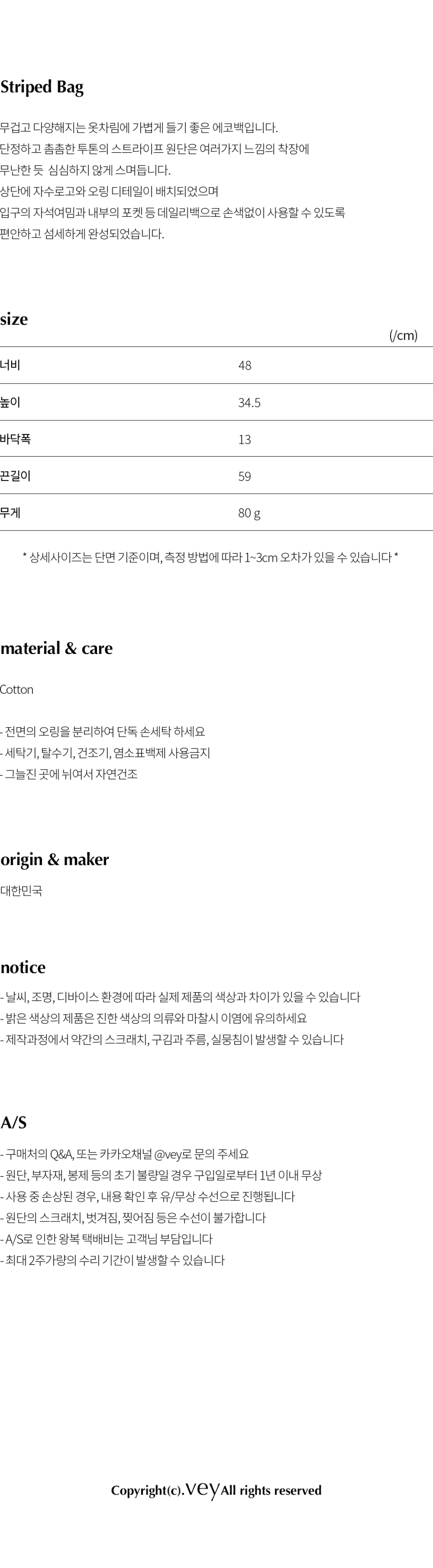 베이(VEY)는 'very easy'를 의미합니다. 새롭고 섬세하면서도 기본에 충실한 가방을 만듭니다. 취향을 기반으로 복장과 상황을 자유롭게 넘나드는 균형감을 지향합니다.