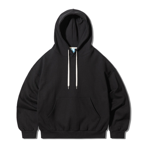 오버핏 특양면 기모 벌룬 스웻 후디- 블랙