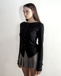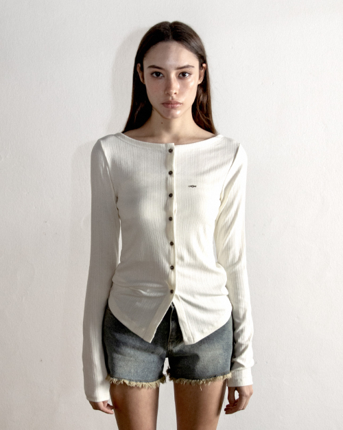 - 슬림핏, 보트 넥라인, 앞면 버튼 여밈