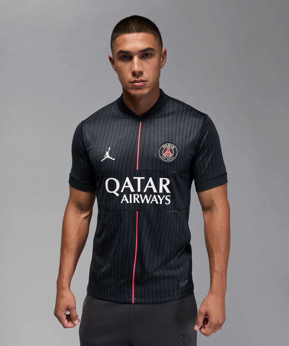 파리 생제르맹 2025/26 스타디움 포스 조던 드라이 핏 축구 레플리카 저지 M - 오프 누아르:블랙:펄 핑크 / HM3206-045