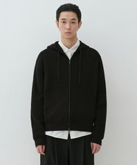 워셔블 수피마 코튼 니트 후디드 집업 [블랙]