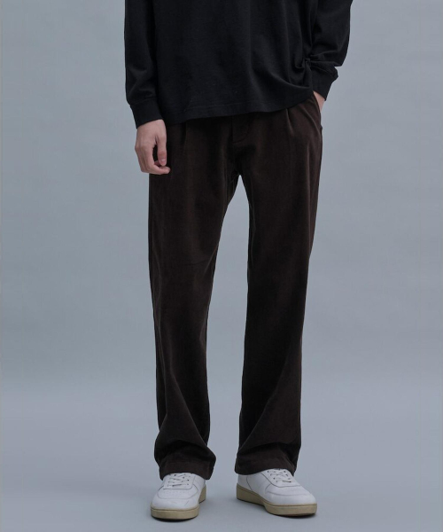부드러운 촉감과 세련된 색감이 돋보이는 팬츠입니다. 안쪽 면에 기모 가공을 더해 보온성을 향상시켰습니다. 여유 있는 세미 와이드핏과 스트레치 소재를 적용하여 착용감이 편안합니다.