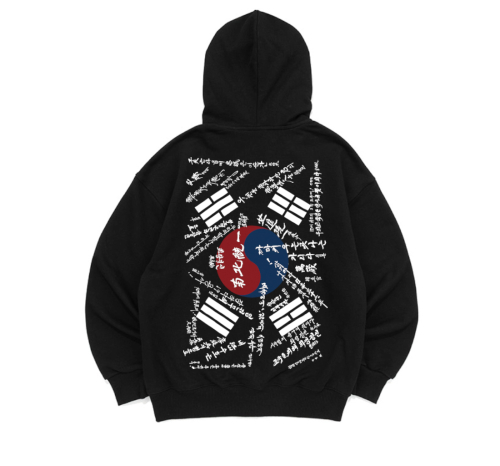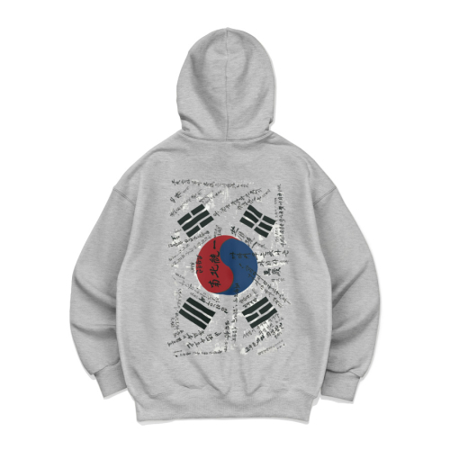 이 후드집업은 바로 그 학도병 태극기 디자인을 현대적으로 재해석하여 프린팅한 제품입니다.