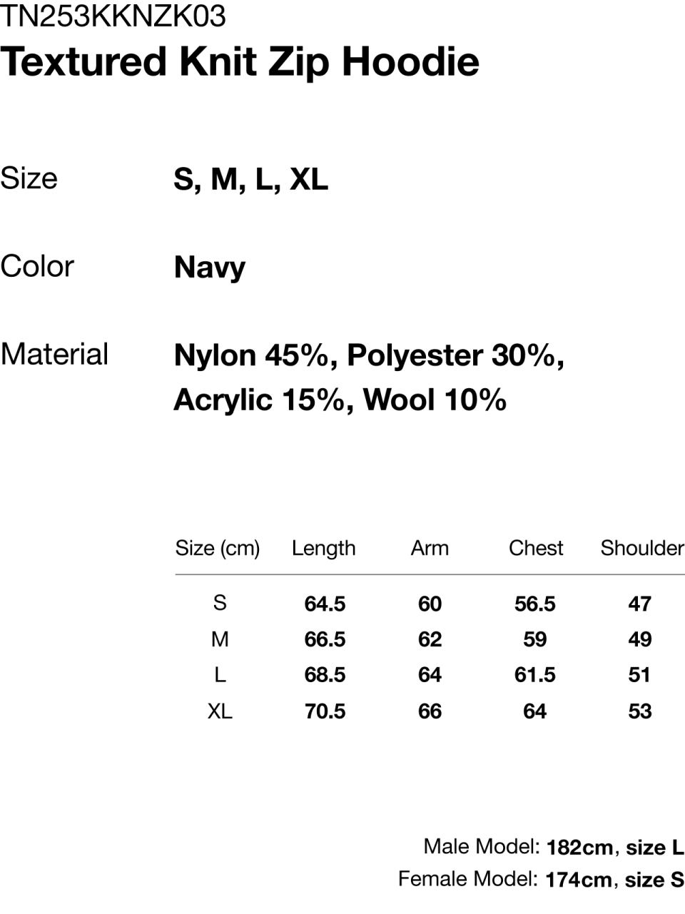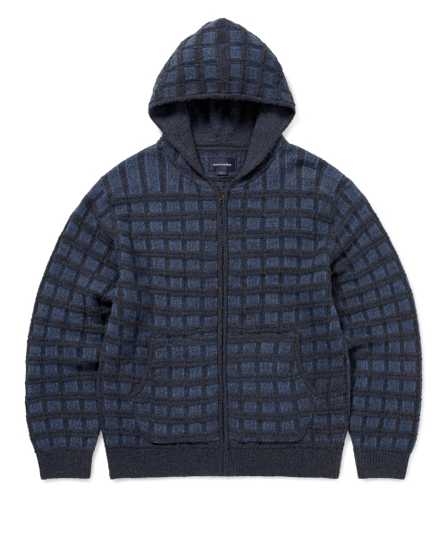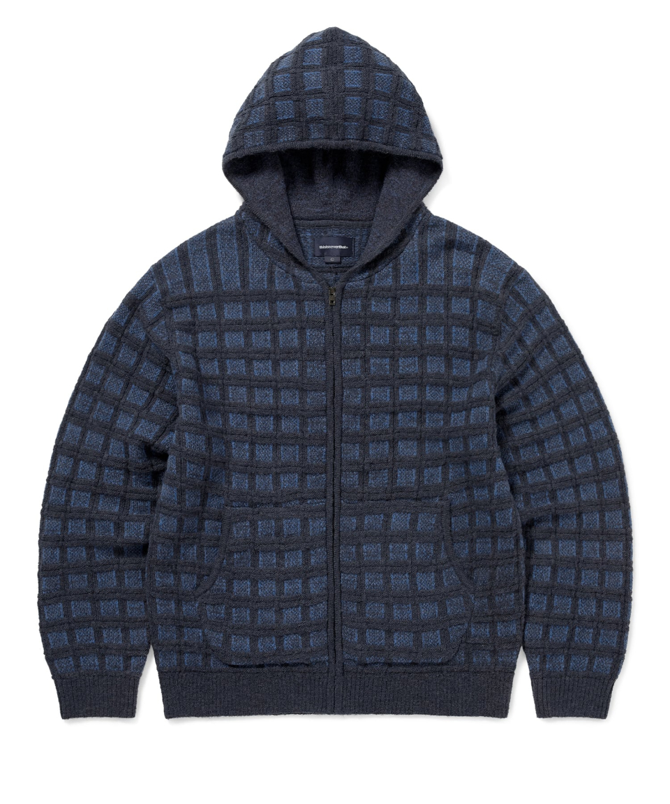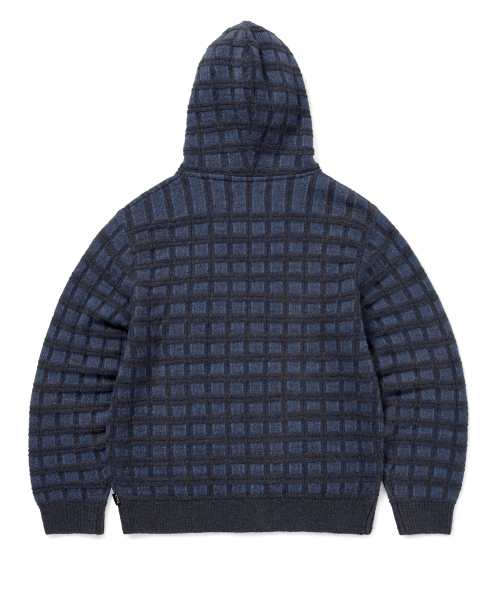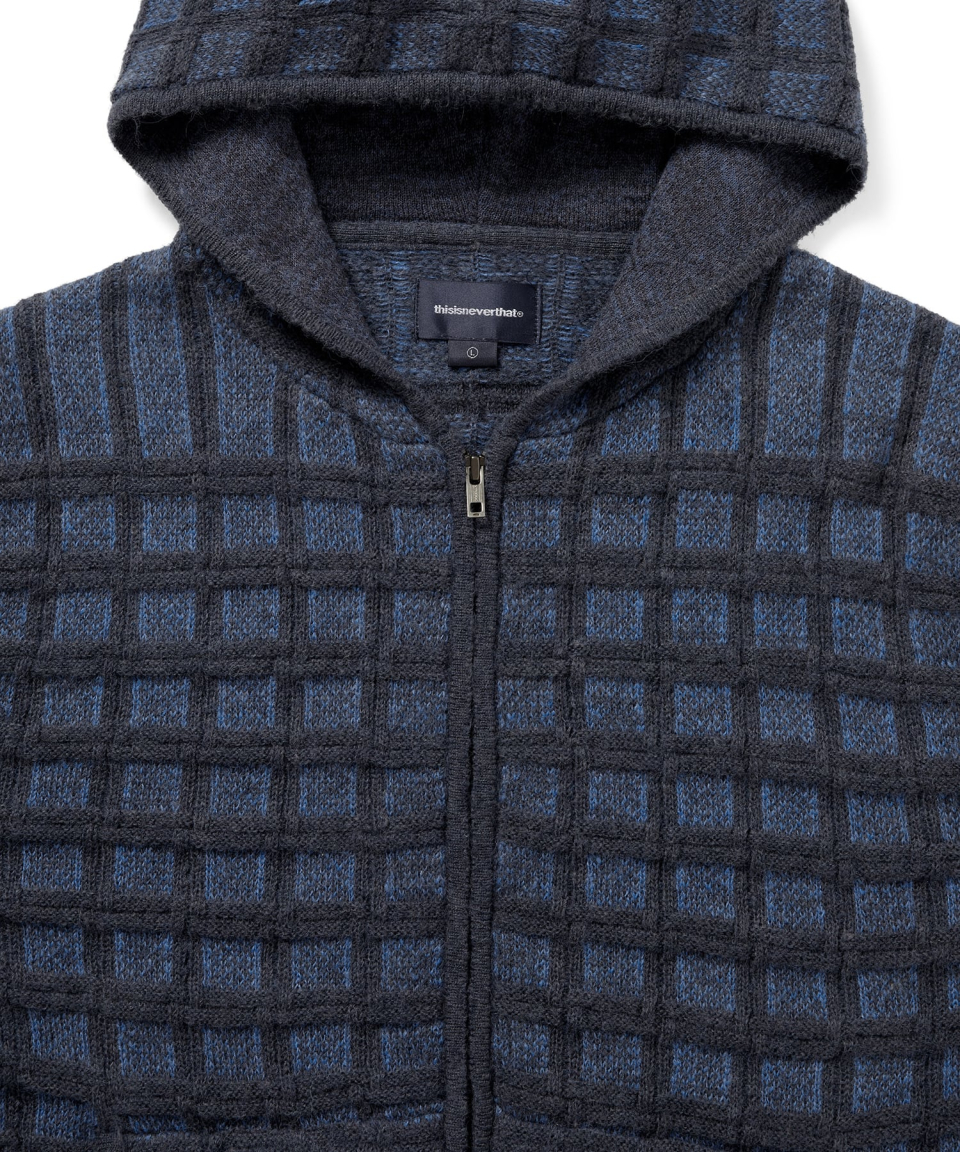 Textured Knit Zip Hoodie Navy
