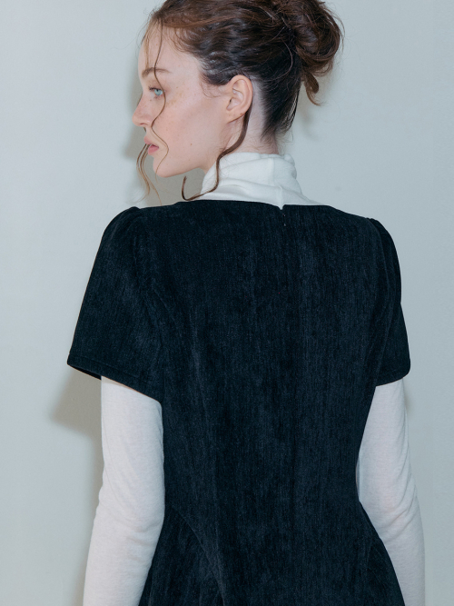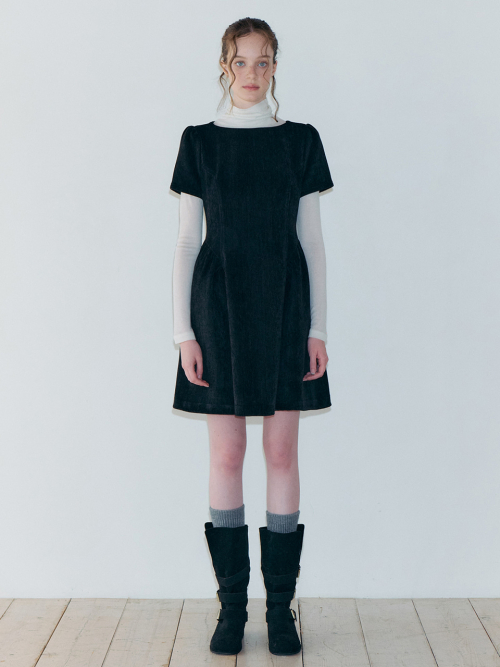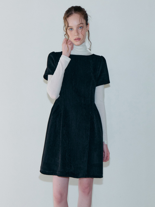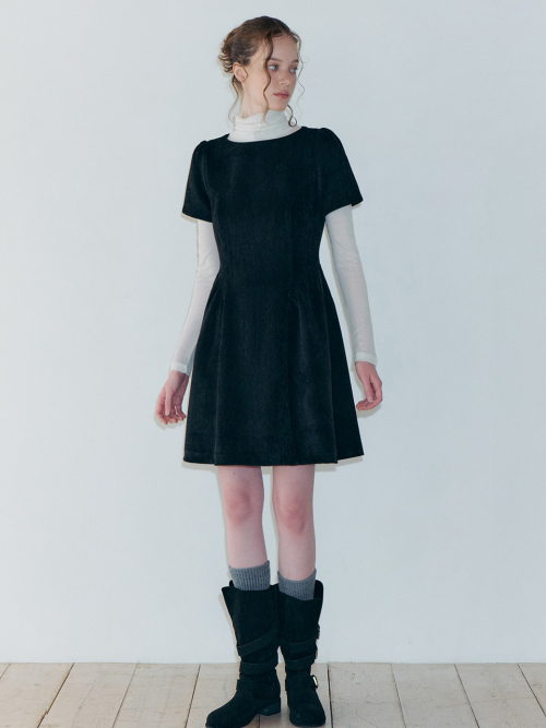 Shirring Flare Mini Dress, Black