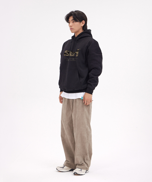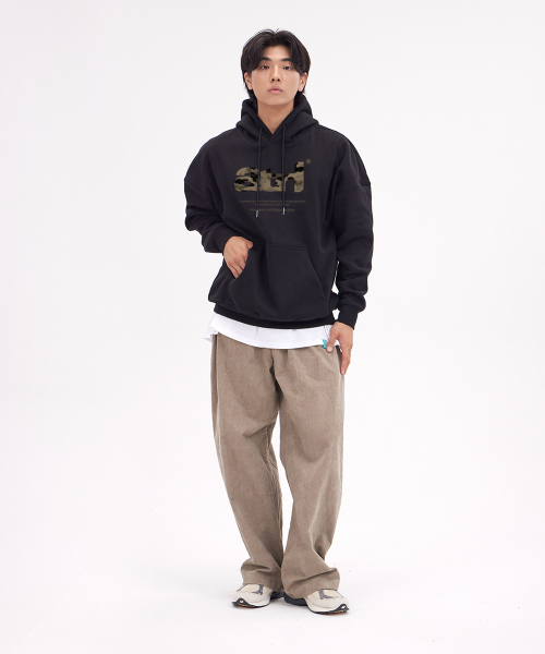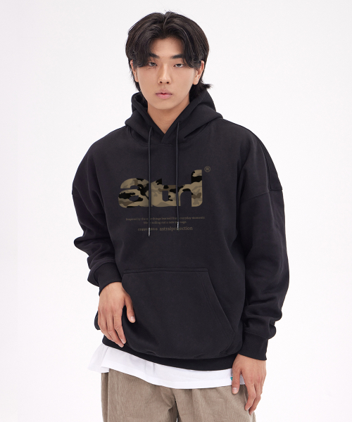 ATRL 데저트 카모 레터링 오버핏 와이드 숄더 후디_블랙