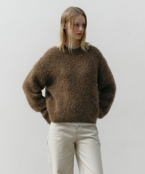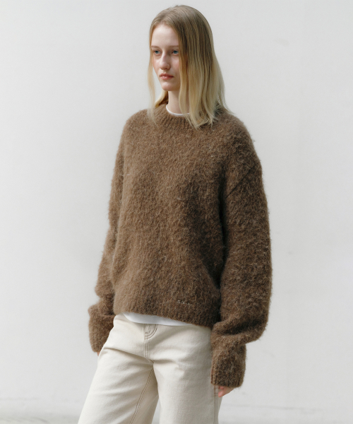 헤어리 알파카 풀오버 모카