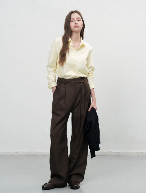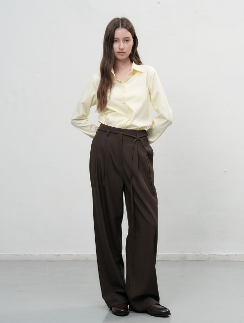 우먼즈 웨이스트밴들리스 와이드 슬랙스 [라이트 브라운]