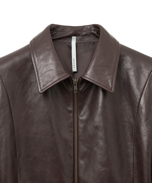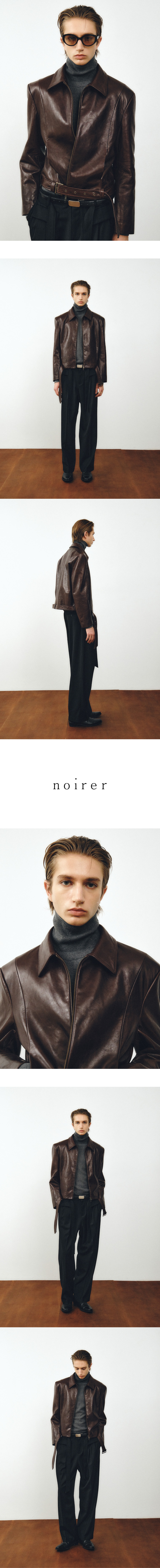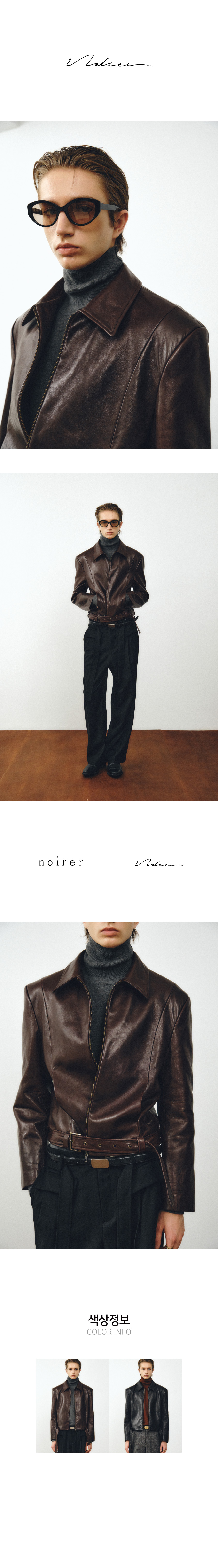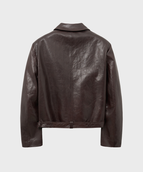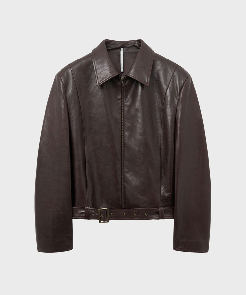 램스 레더 벨티드 크롭 자켓 (버건디)