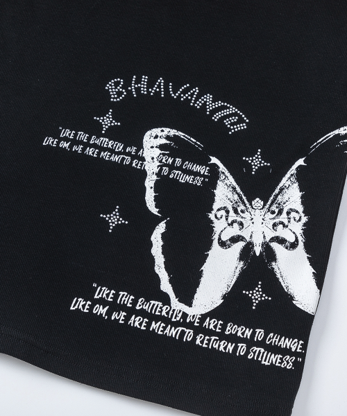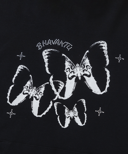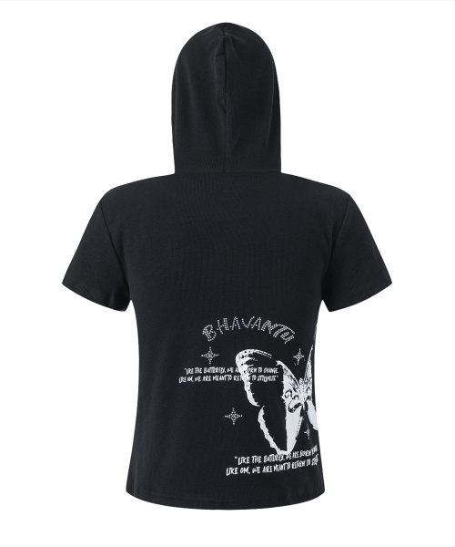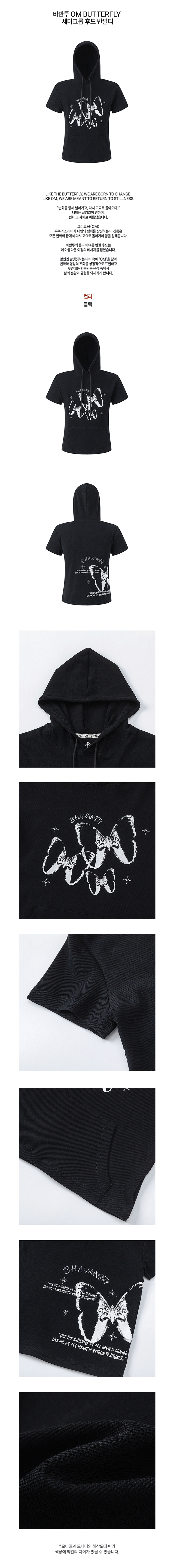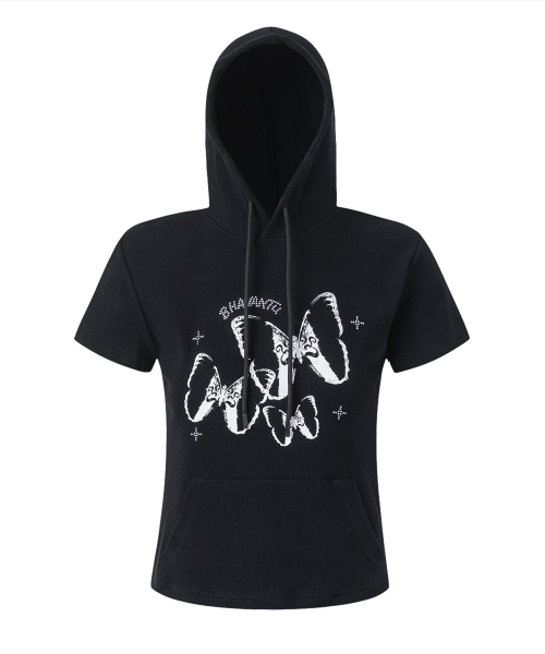 OM BUTTERFLY 세미크롭 후드 반팔티