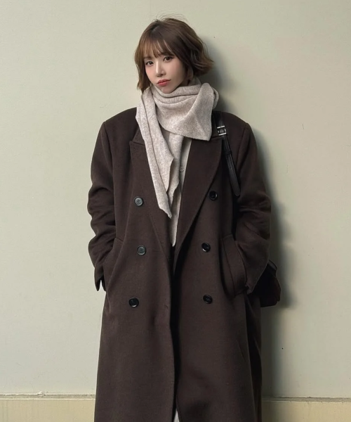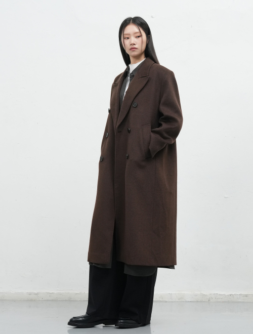 더블 브레스티드 울 롱코트 [DARK BROWN] / WBE3L10507