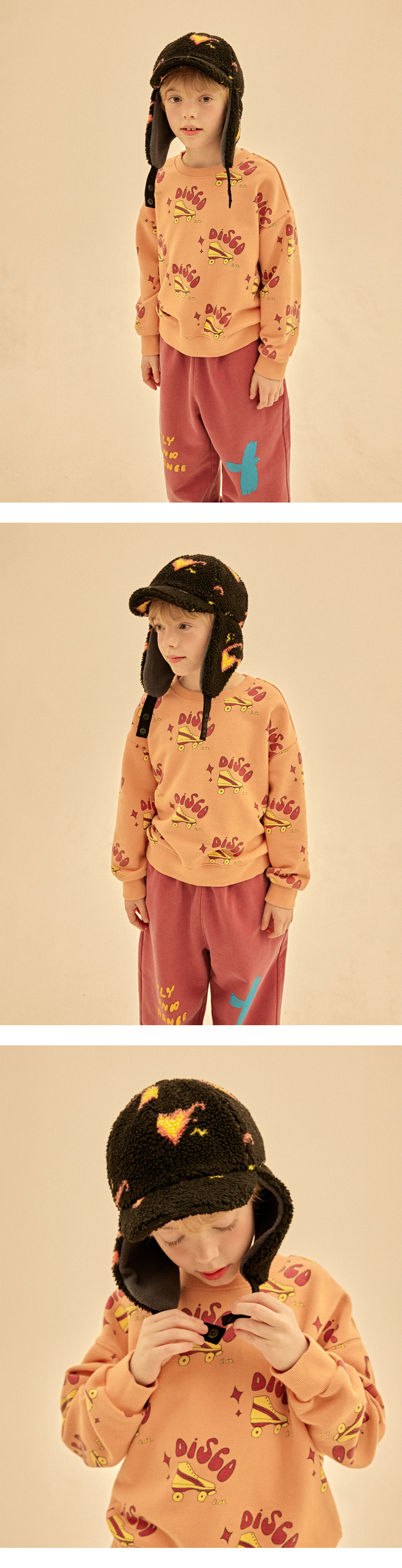디스코 롤러 올오버 스웻셔츠_피치오렌지