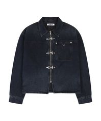메탈 후크 버튼 크롭 데님 자켓 (BLUE BLACK)