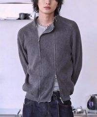 [피인오 X 디나쑈] 하이넥 레이어드 니트 집업 - 차콜
