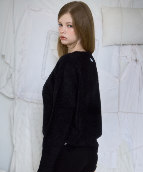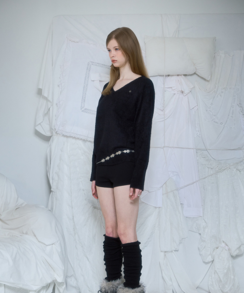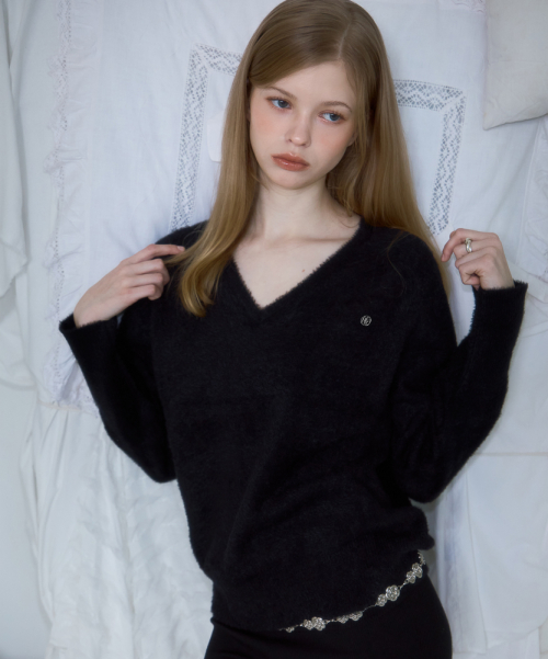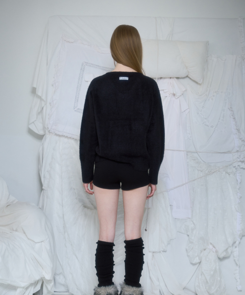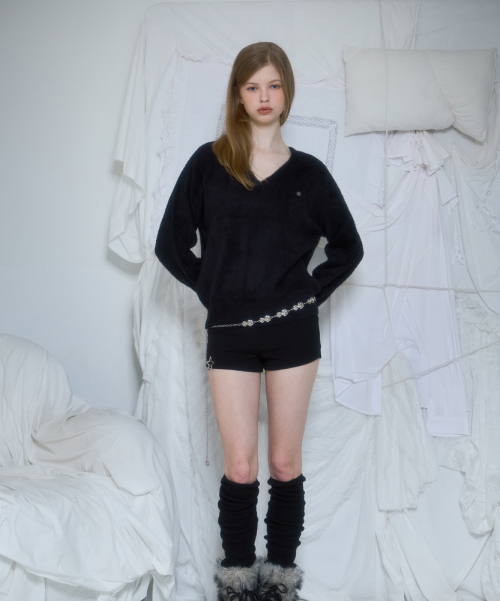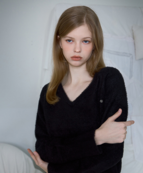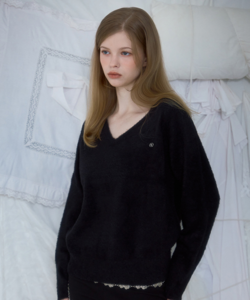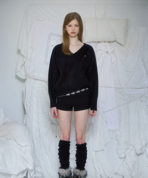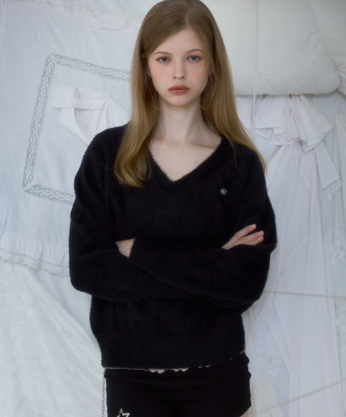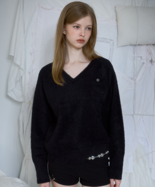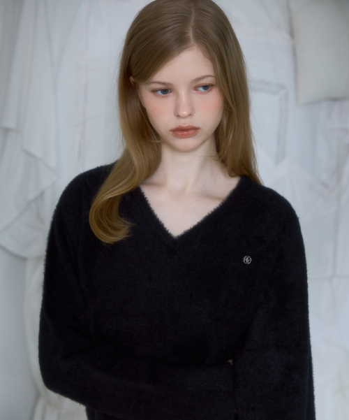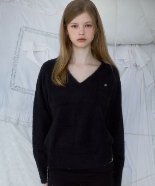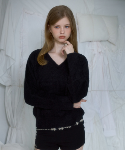 Fur V-neck Knit [Black]