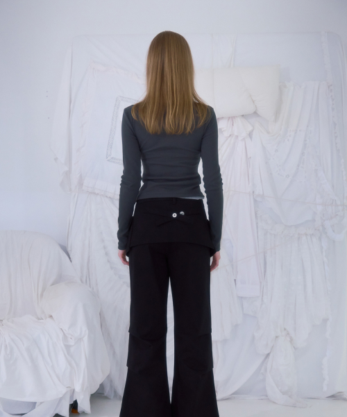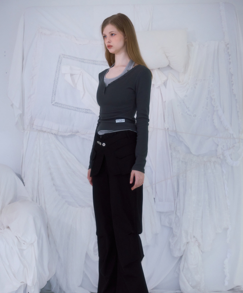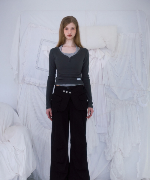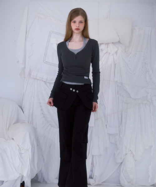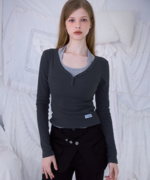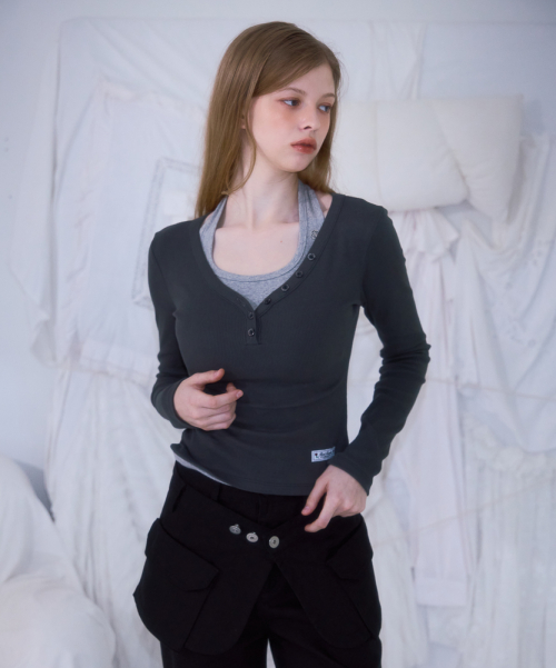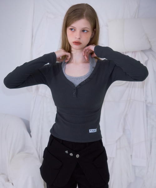 V-neck Button Long Sleeve [Charcoal]