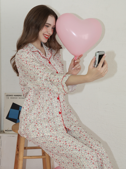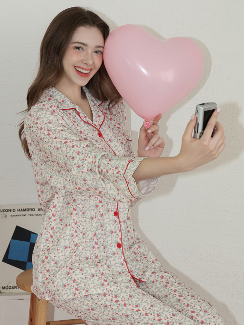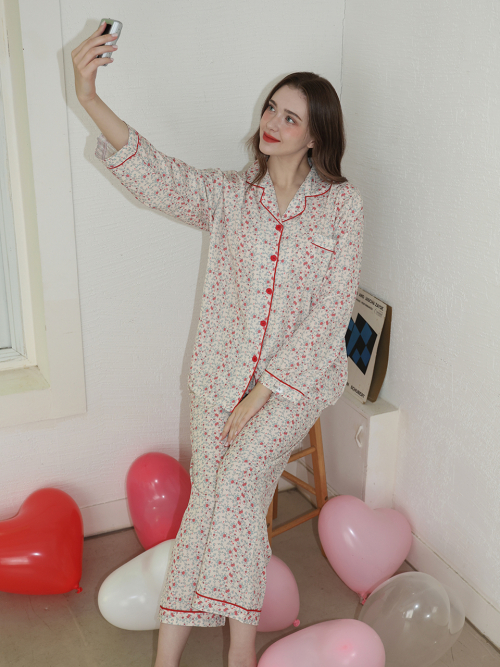 [2PACK] 로맨틱 플로랄 클린핏 커플잠옷 긴팔 파자마 상하의 세트