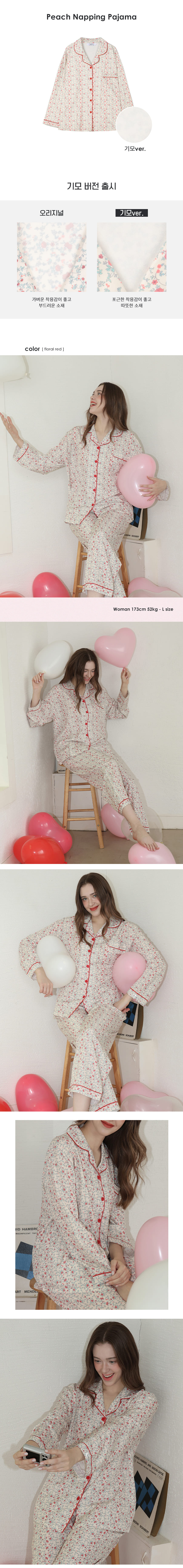 빈티지플로랄 피치기모 긴팔 파자마 상하의 세트