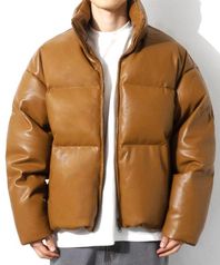 TL Synthetic Leather Duck Down Short Padding (Brown)