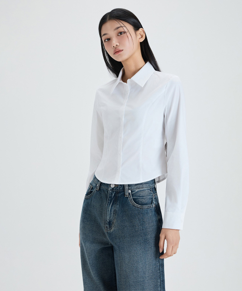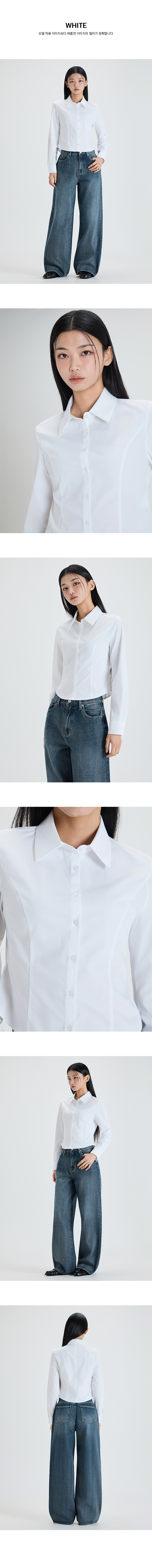 우먼즈 릴렉스드 크롭 실키 셔츠 [화이트]