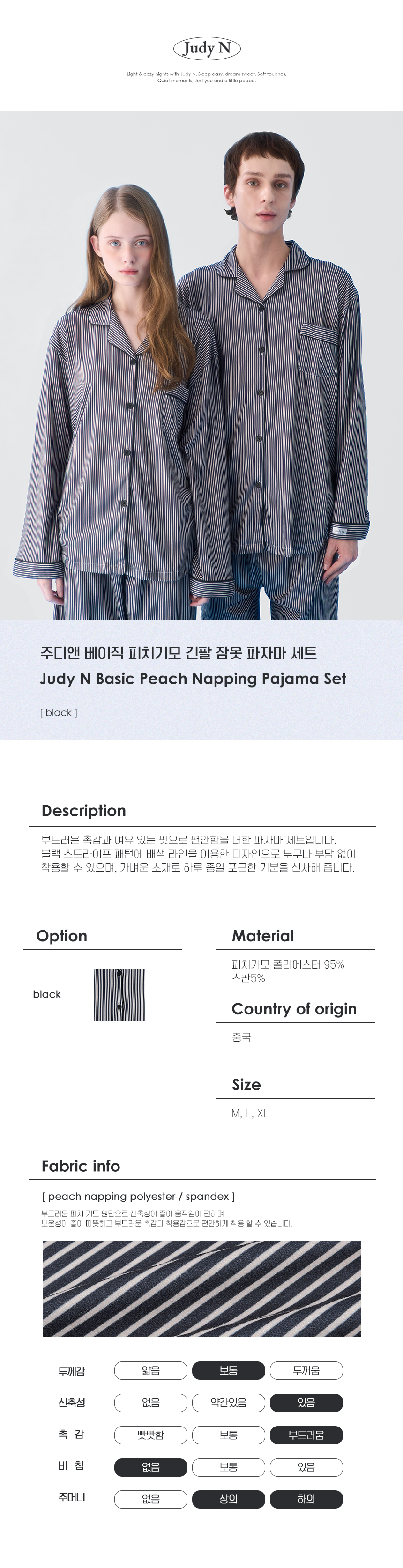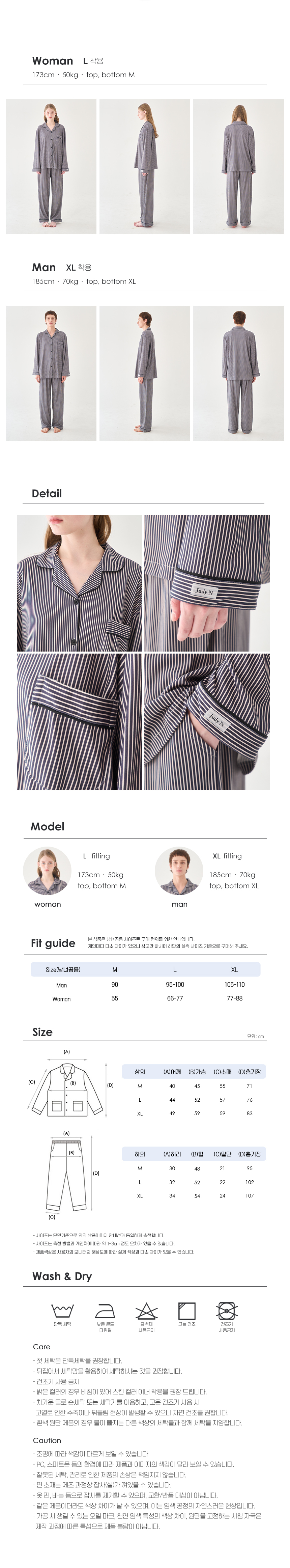 베이직 피치기모 커플잠옷 긴팔 파자마 상하의 세트
