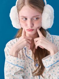 블루플로랄 피치기모 커플잠옷 긴팔 파자마 상하의 세트
