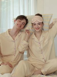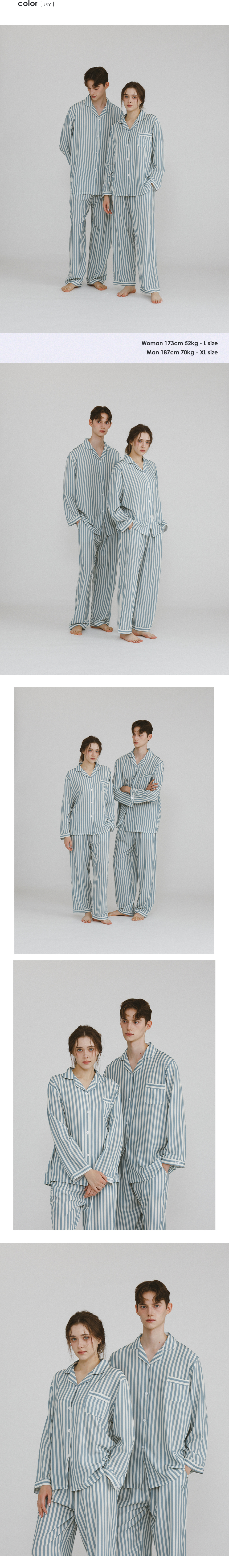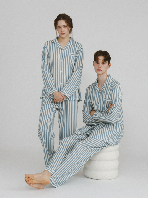 미니멀 피치기모 커플잠옷 긴팔 파자마 상하의 세트