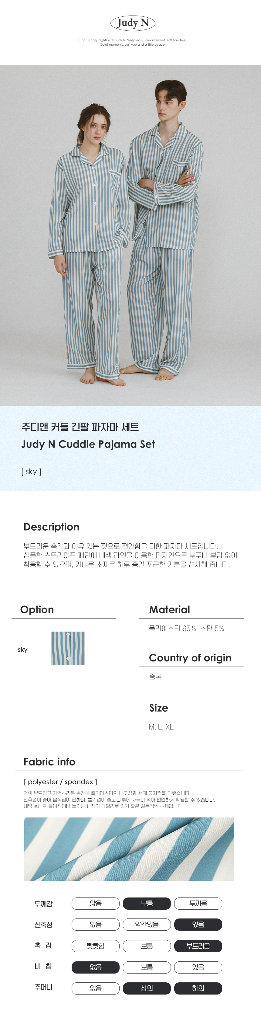 주디앤(JUDYN)은 파자마 한 벌로 시작되는 포근한 하루와 부드러운 휴식의 순간을 선사하는 편안한 라이프스타일 브랜드입니다.