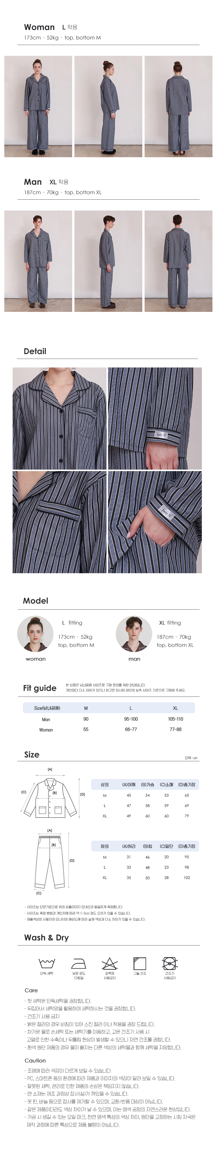 [2PACK] 퓨어세레인 커플잠옷 긴팔 잠옷 파자마 세트
