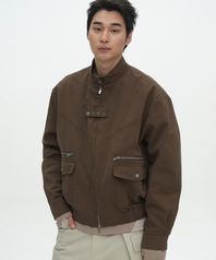 하이넥 스탠다드 아일렛 비조 포인트 코튼 블루종 투웨이 자켓 [브라운]