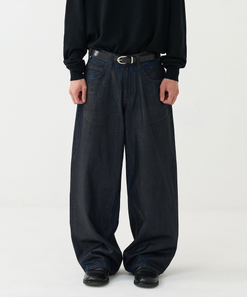 wide coated denim pants (indigo)