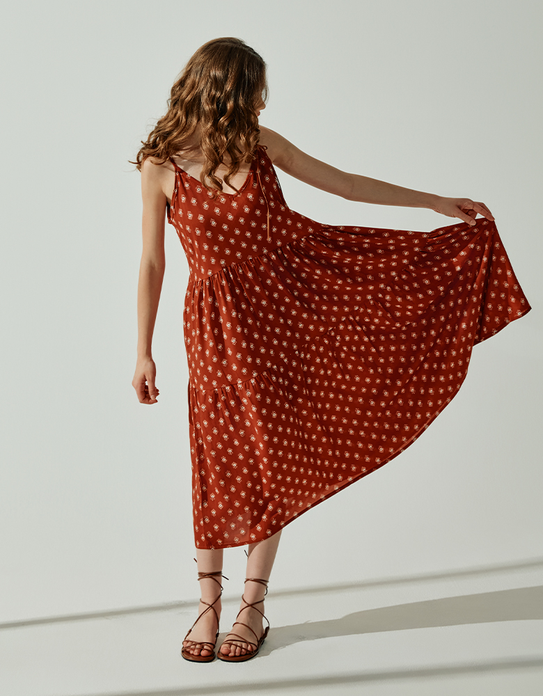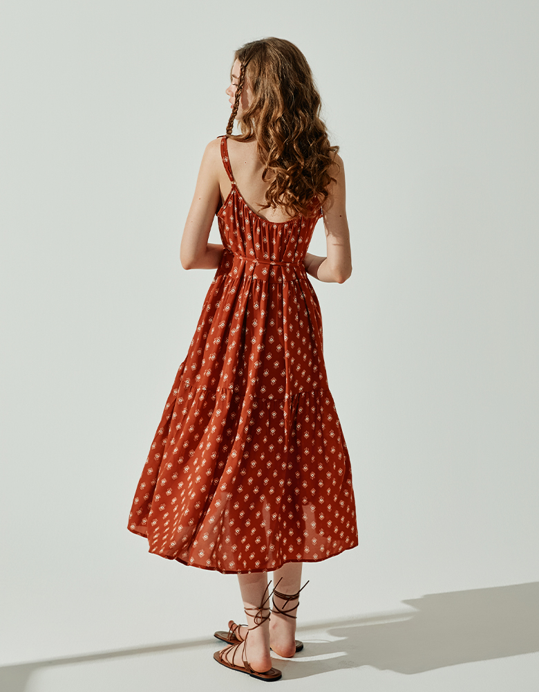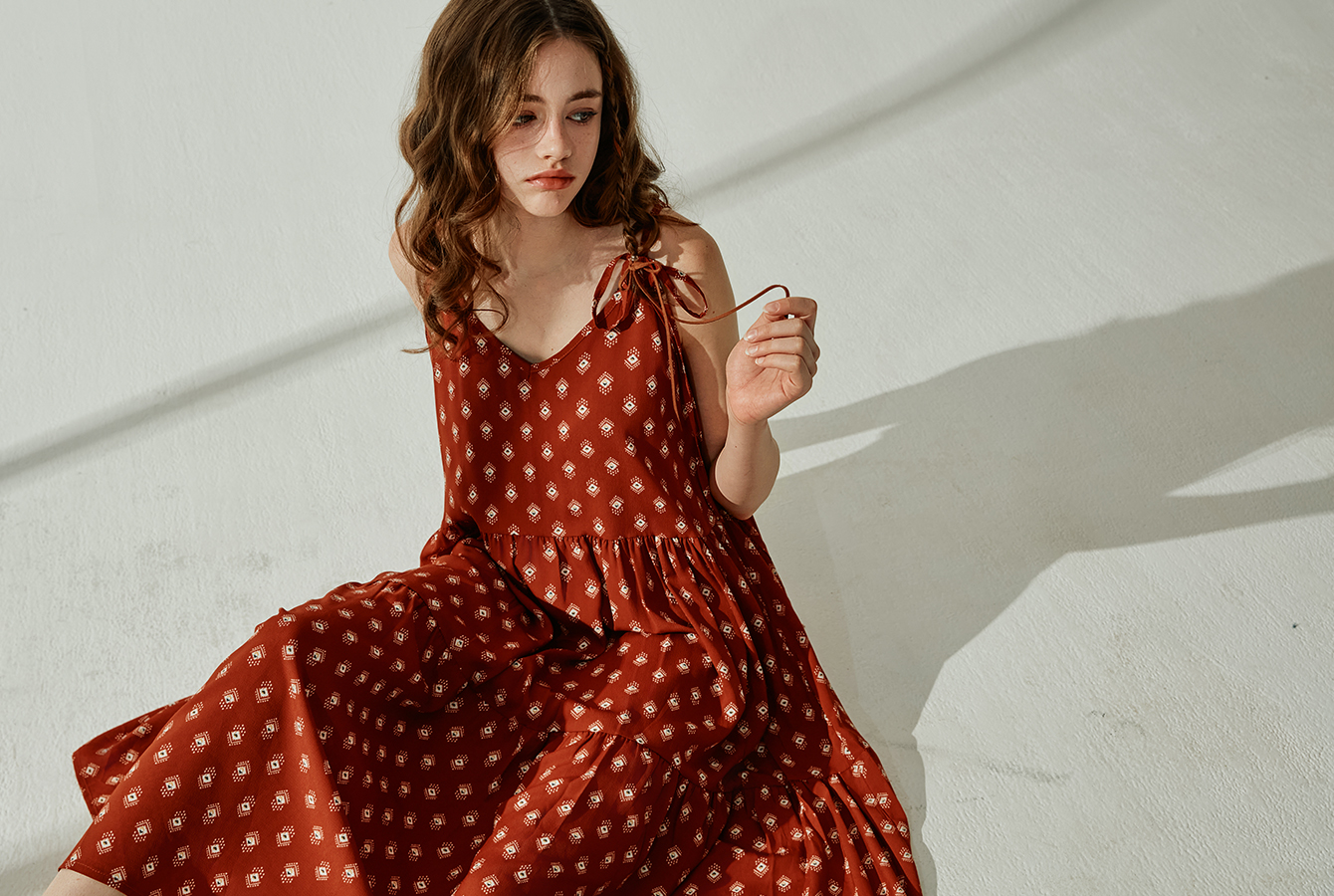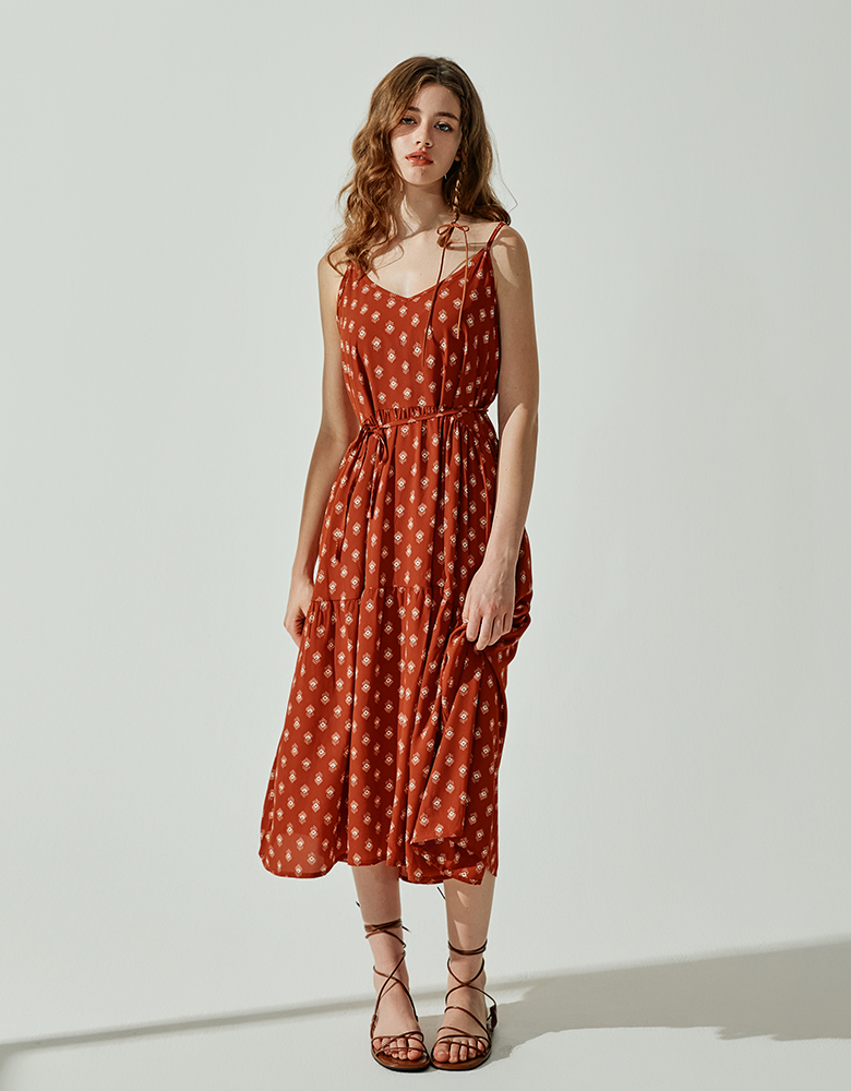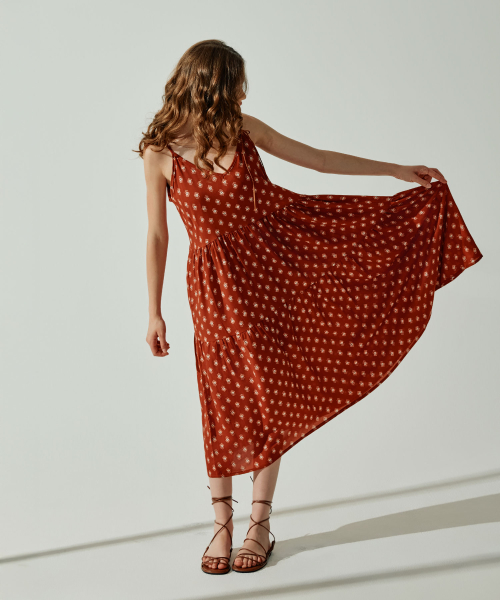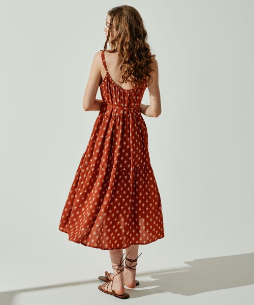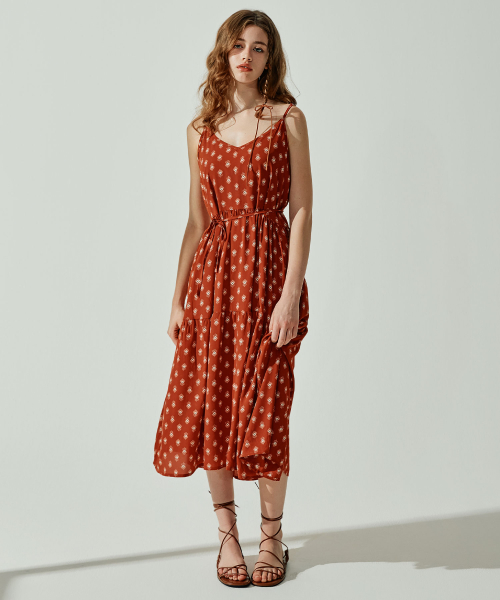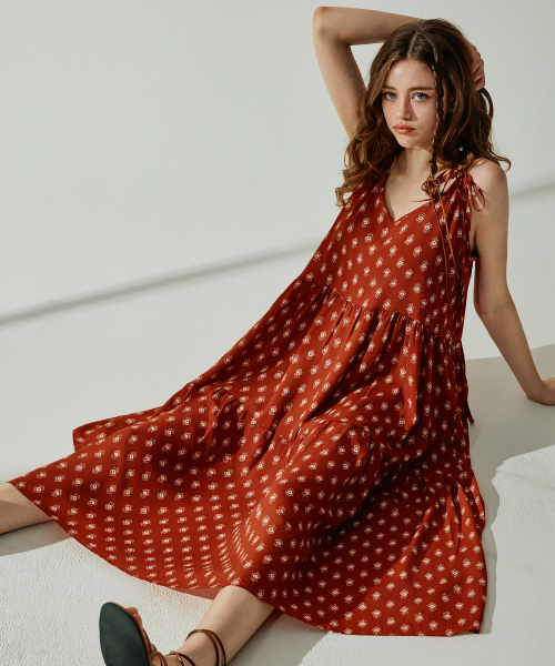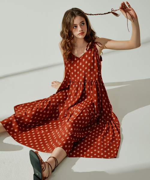 · 페미닌한 실루엣의 티어드 롱 원피스