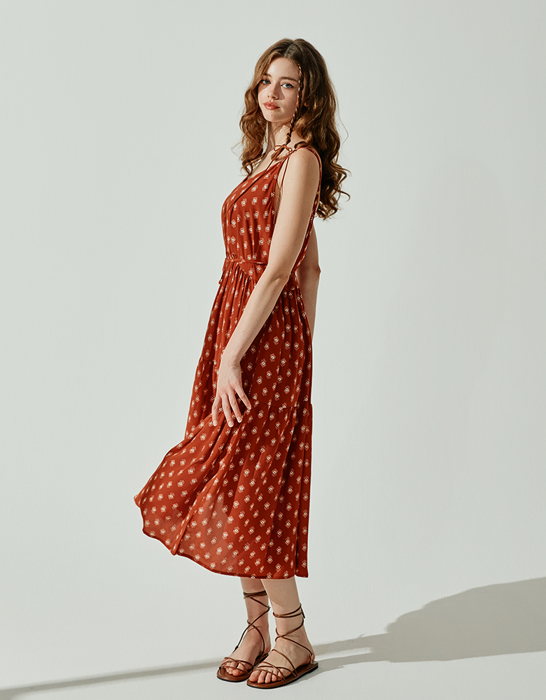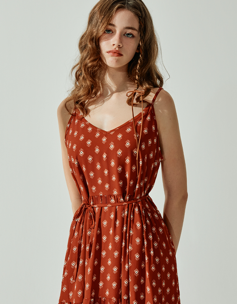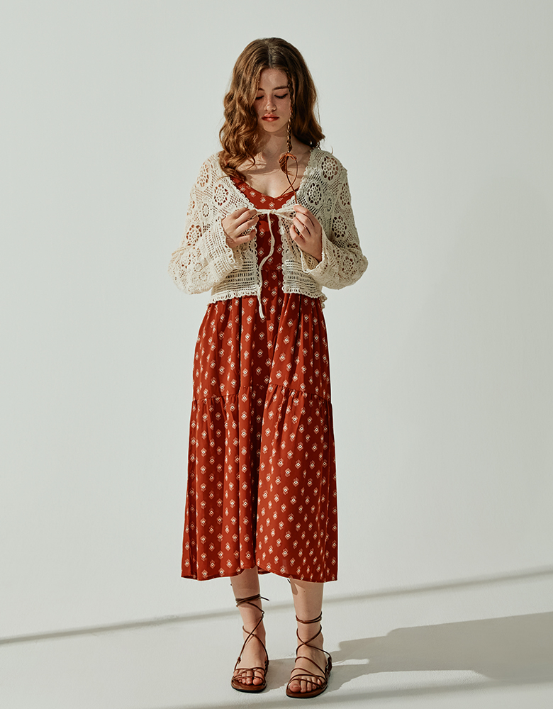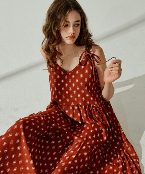· 심플한 실루엣에 에스닉한 프린트가 매력적인 롱 원피스로 감도 높은 스타일링을 연출해주는 제품입니다.