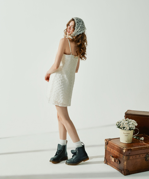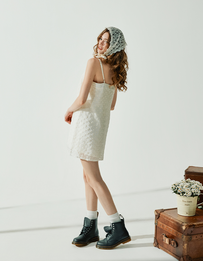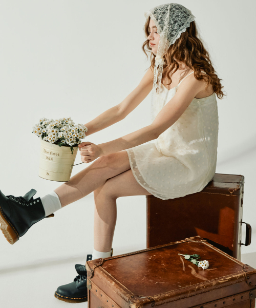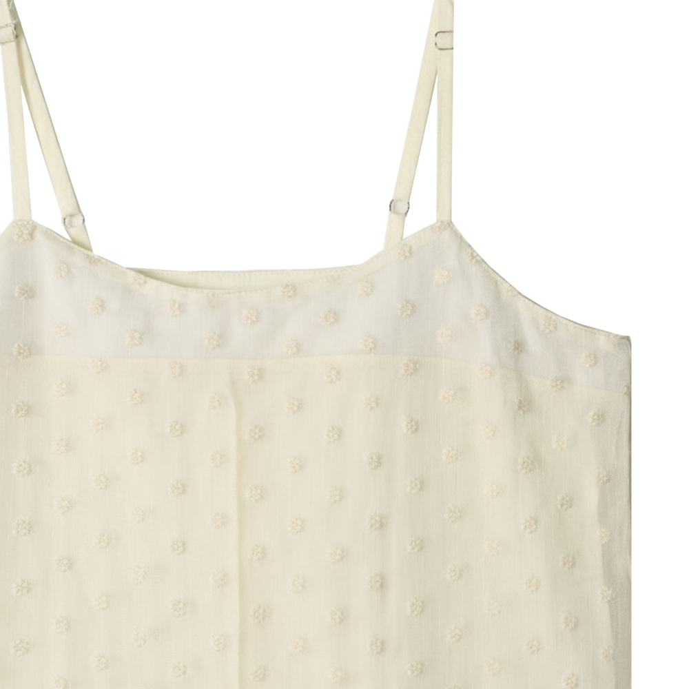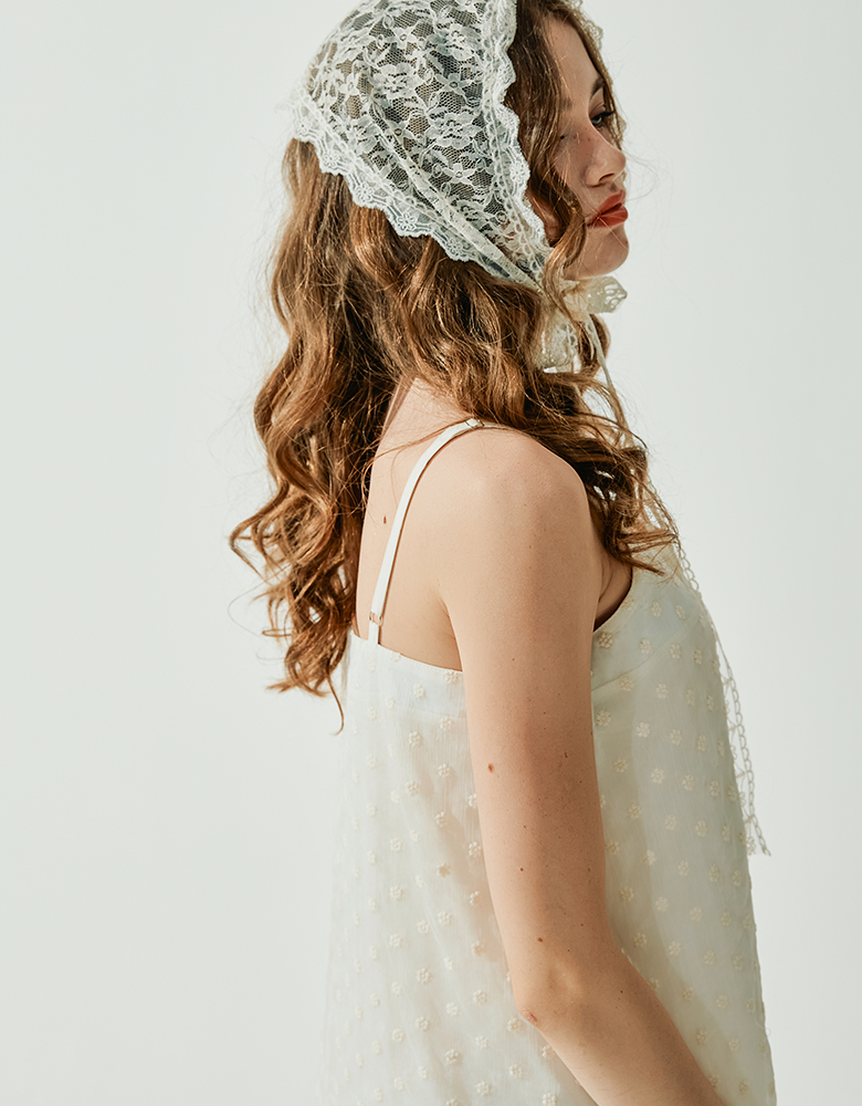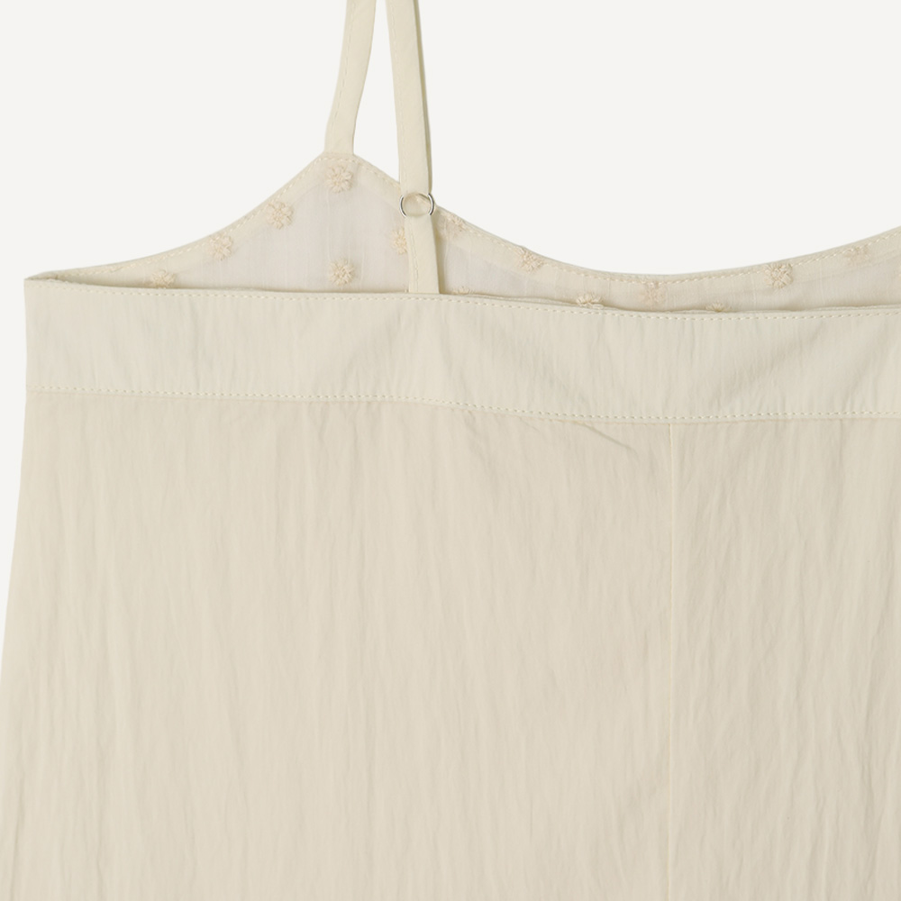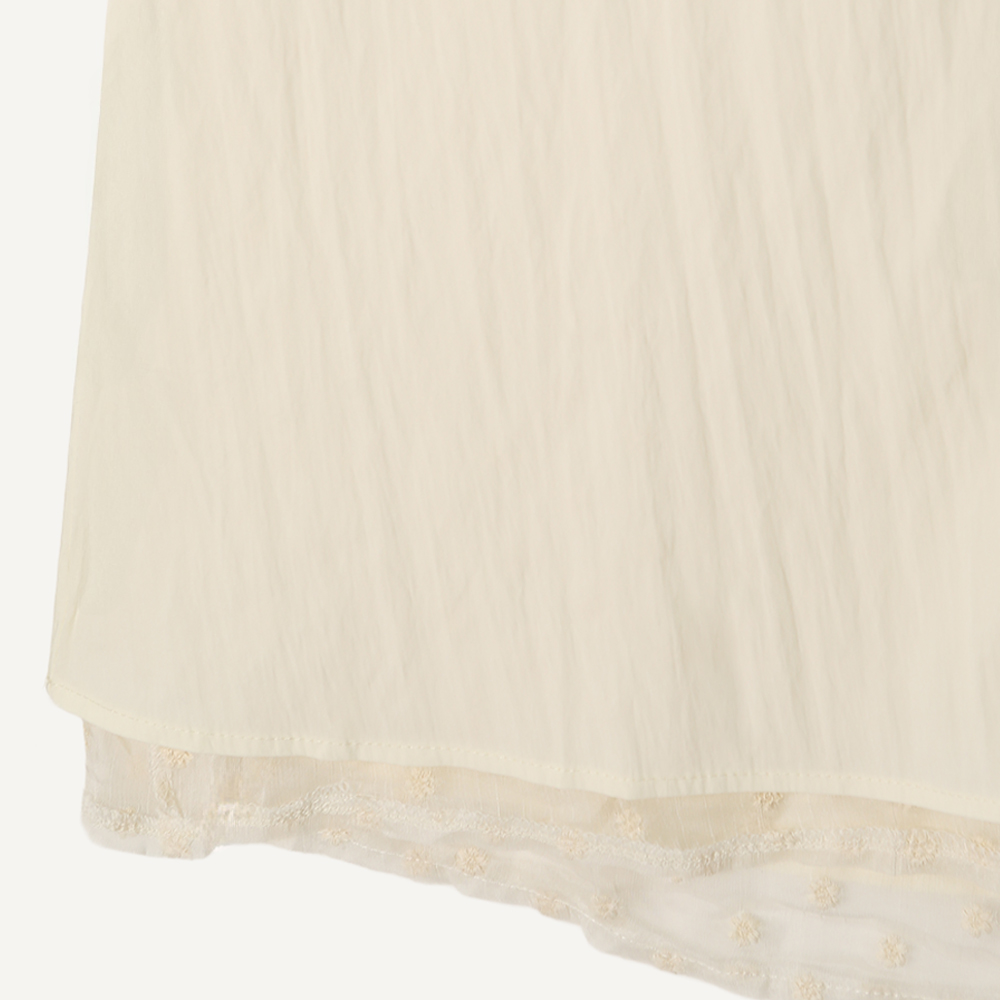 · 레이어드된 디자인으로 밑단에 살짝 보이는 엠브로이더리 쉬폰 패브릭이 매력적인 아이템