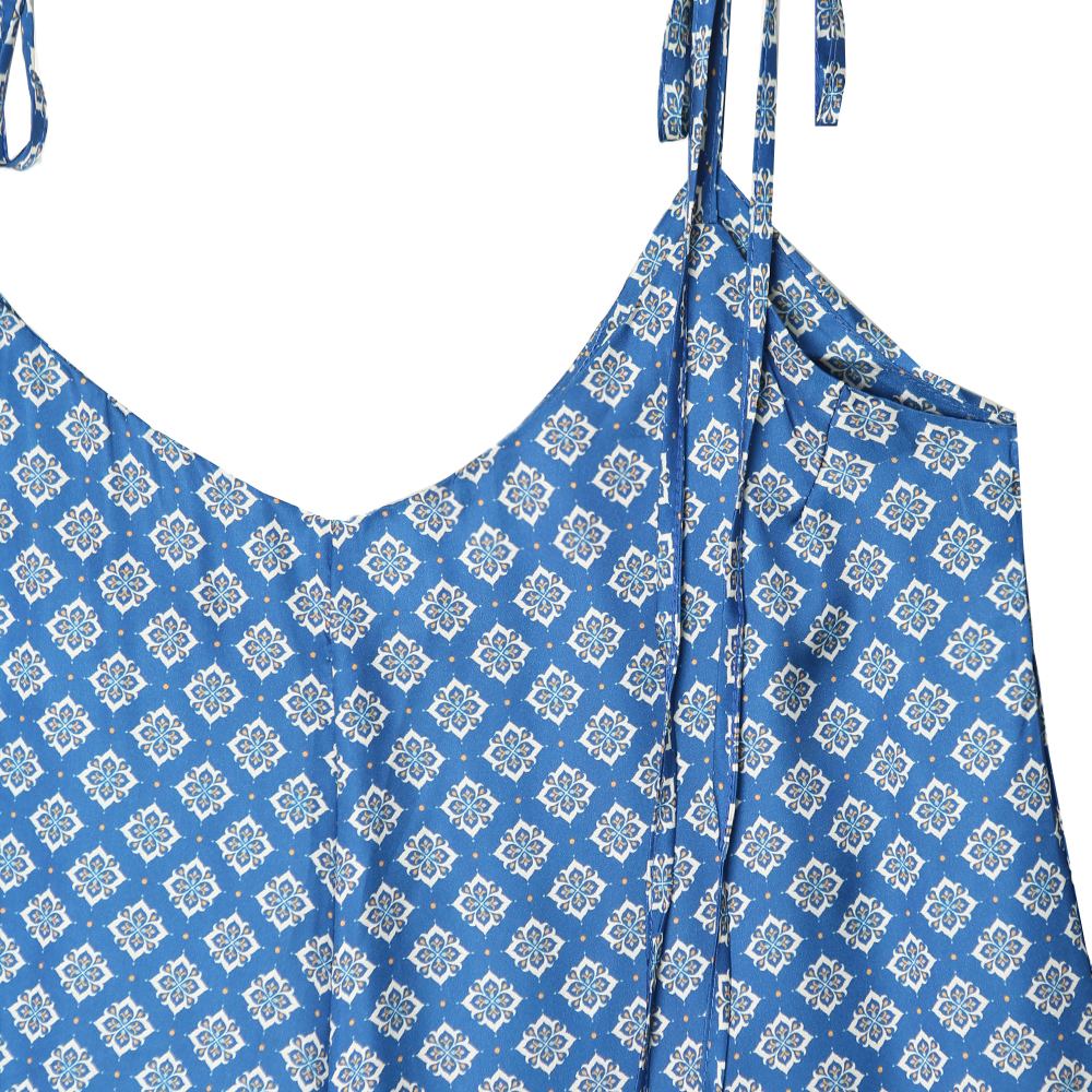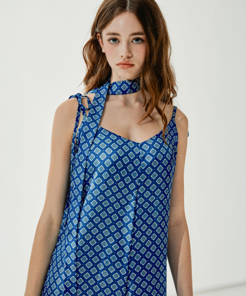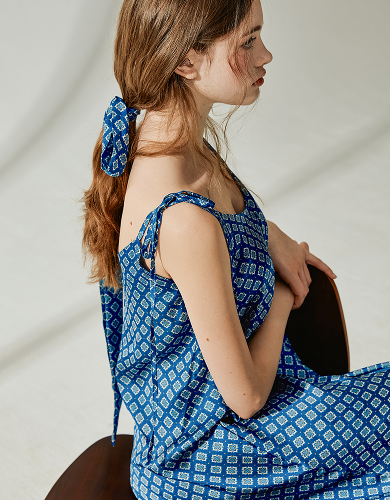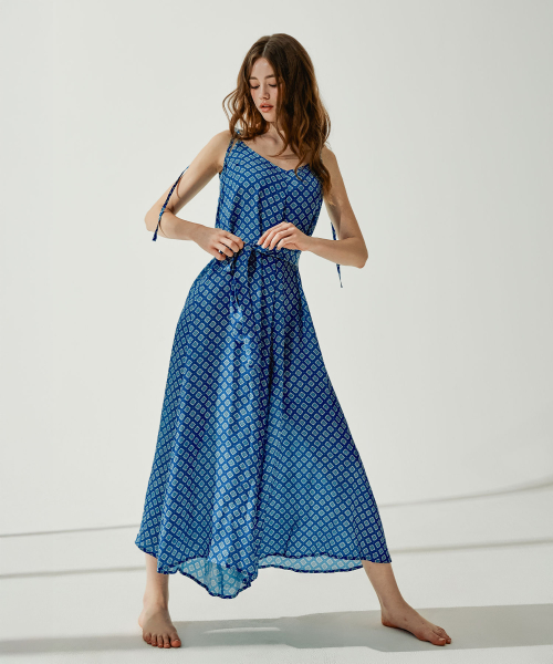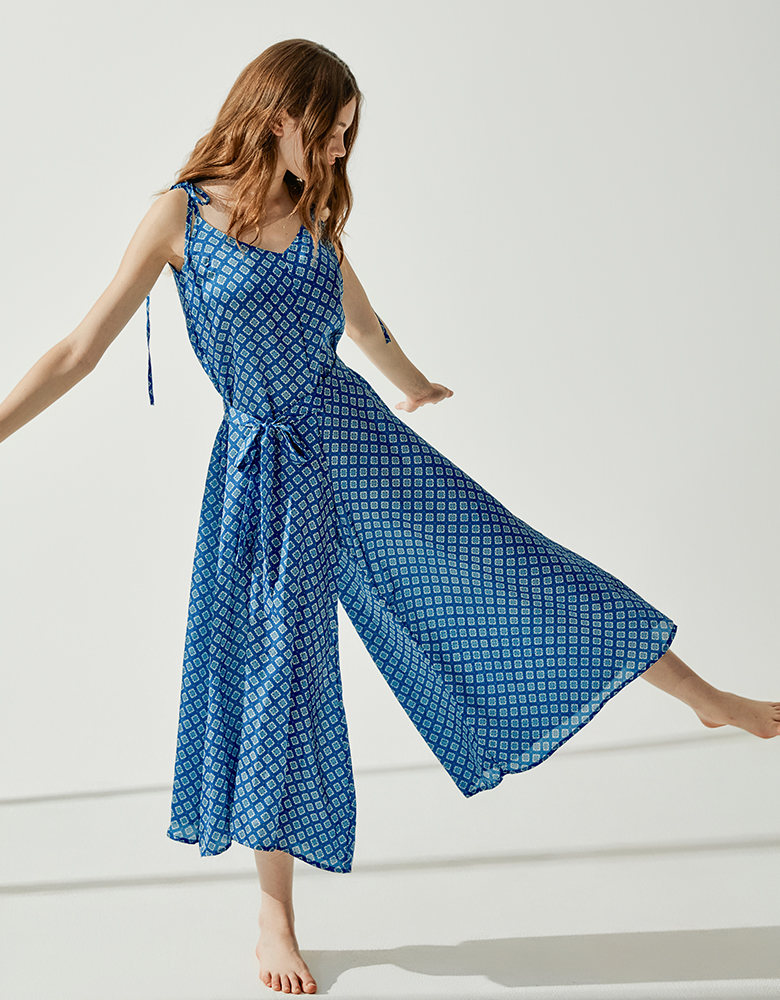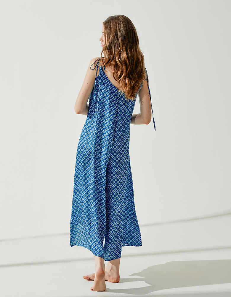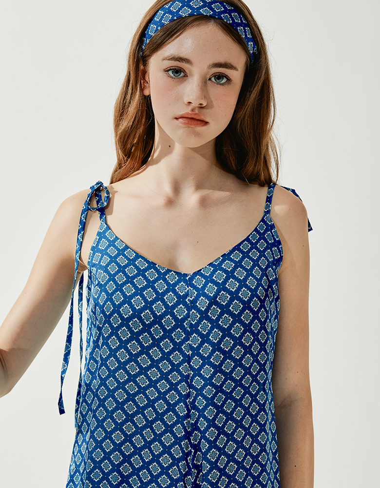 · 세련된 블루 컬러의 유니크한 에스닉 프린팅이 매력적인 점프수트