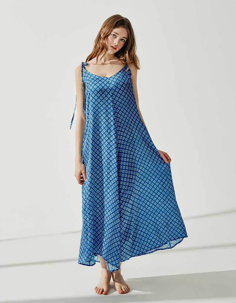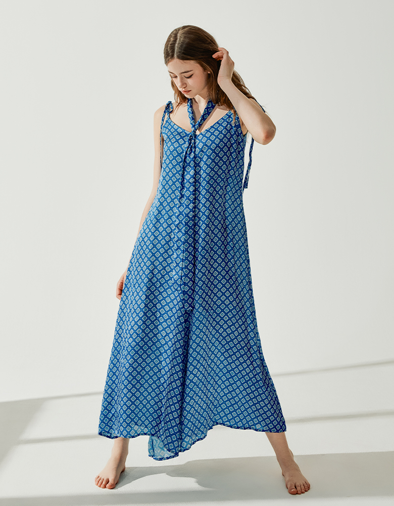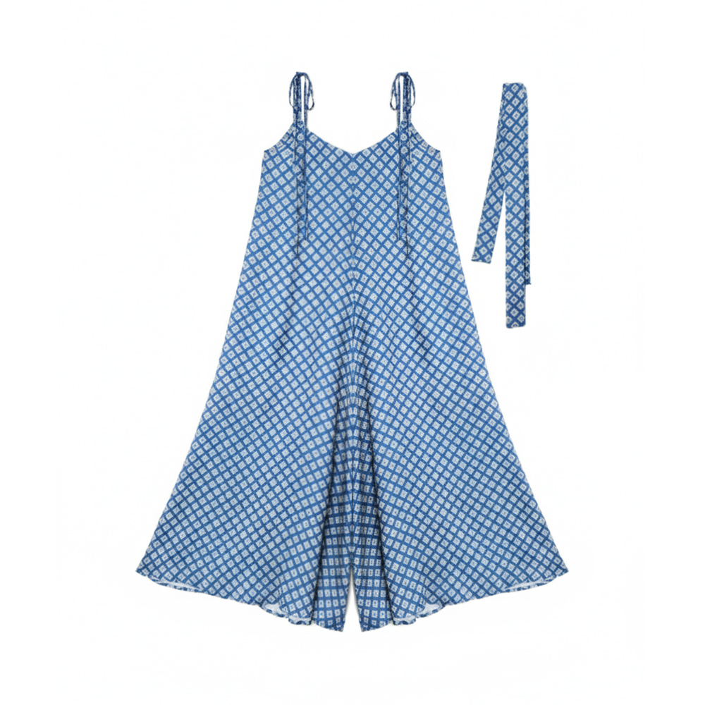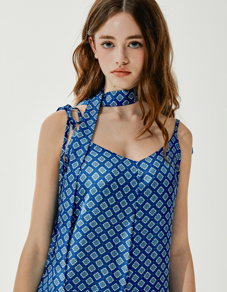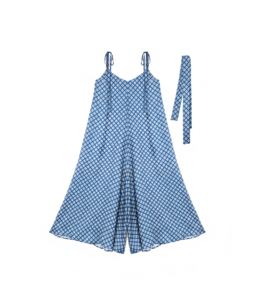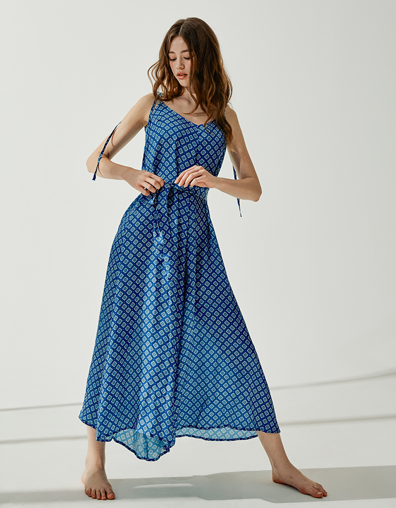 · 세련된 블루 컬러의 유니크한 에스닉 프린팅이 매력적인 점프수트
