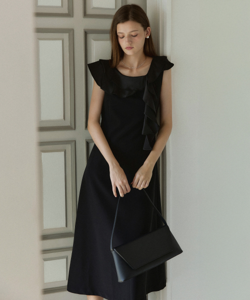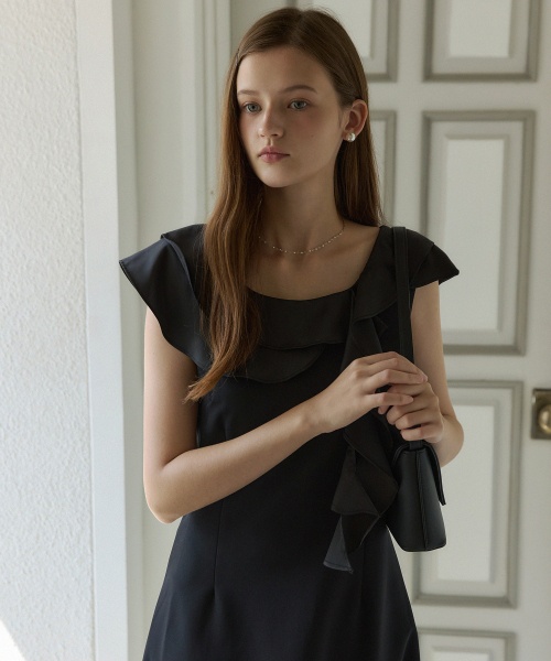 디얼 타이니 버튼 미니 원피스 - 블랙