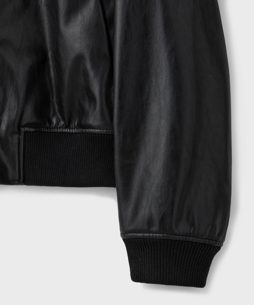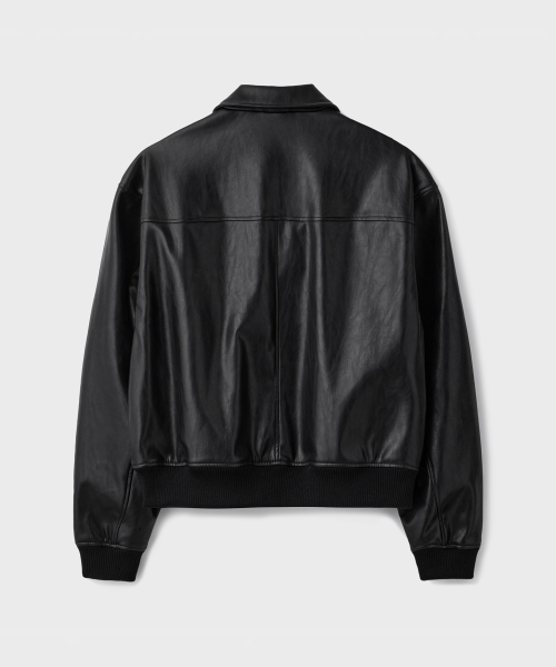 FAKE LEATHER SINGLE JACKET [BLACK]