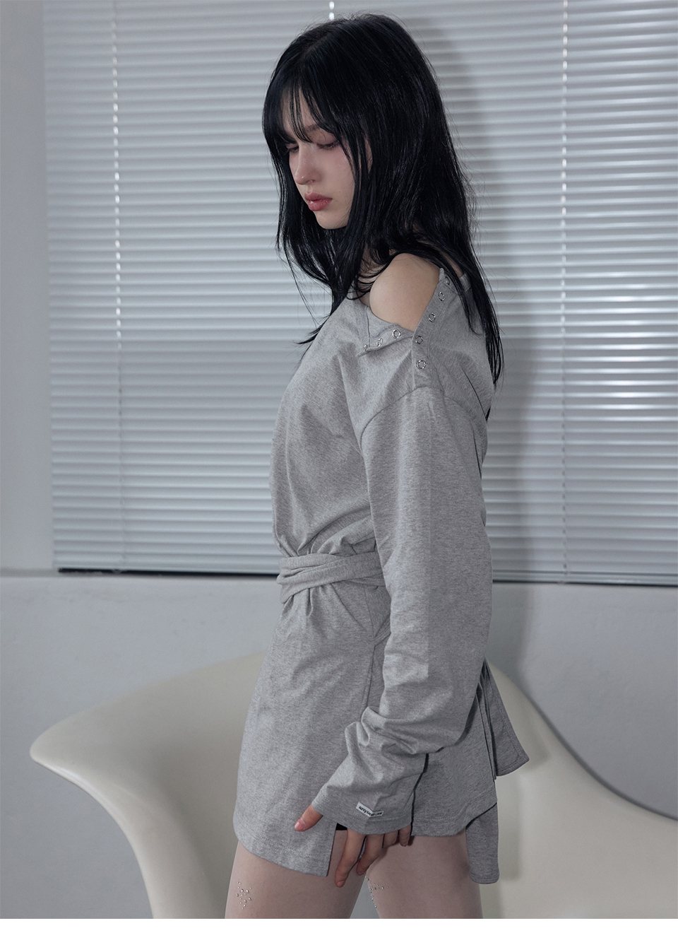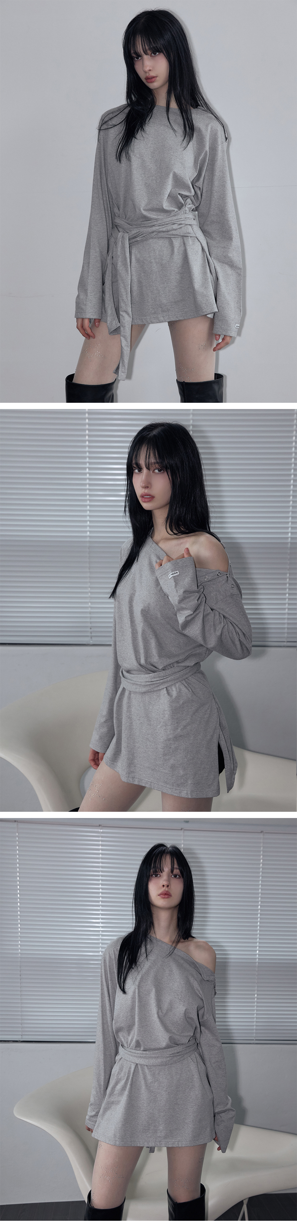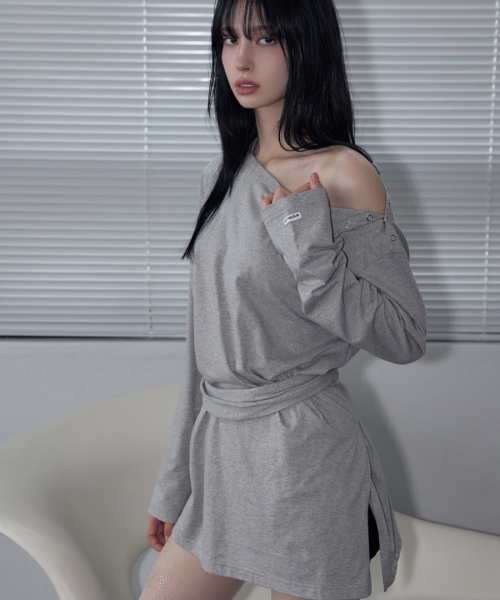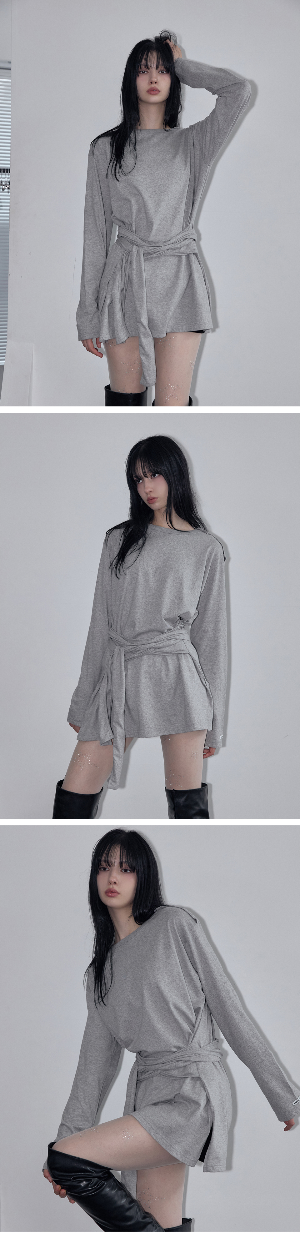 Wrap-Tie Long Sleeve Tee Melange Gray