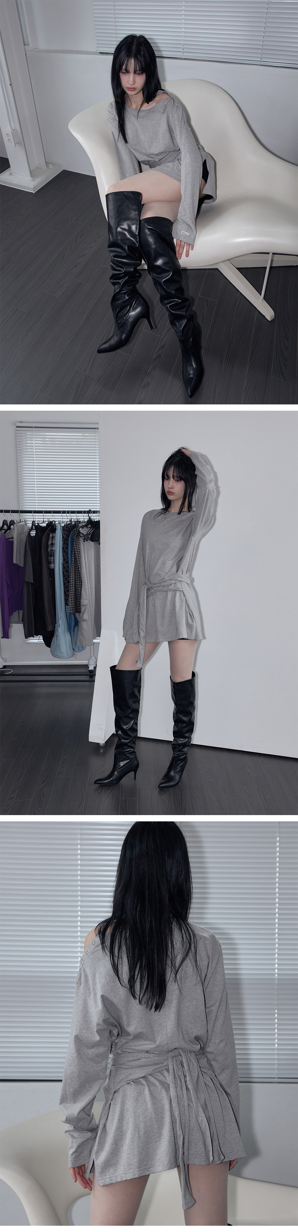 헴 스트링 레이어드 드레스 블랙