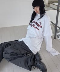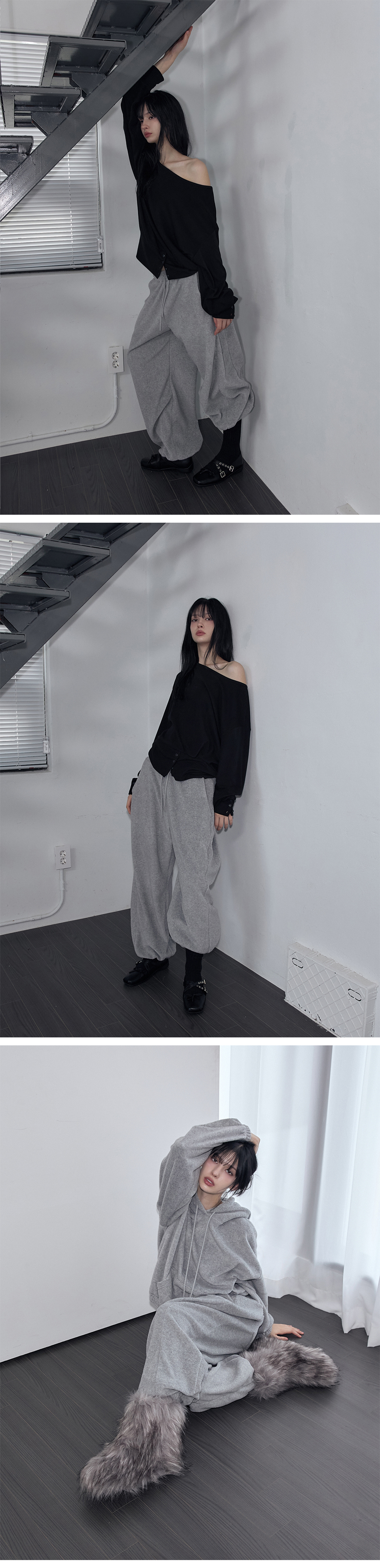 오프숄더 레터링 그래픽 후드 긴팔 티셔츠 OATMEAL