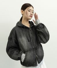2WAY 세미 크롭 페이디드 후드 집업_데님 빈티지 블랙