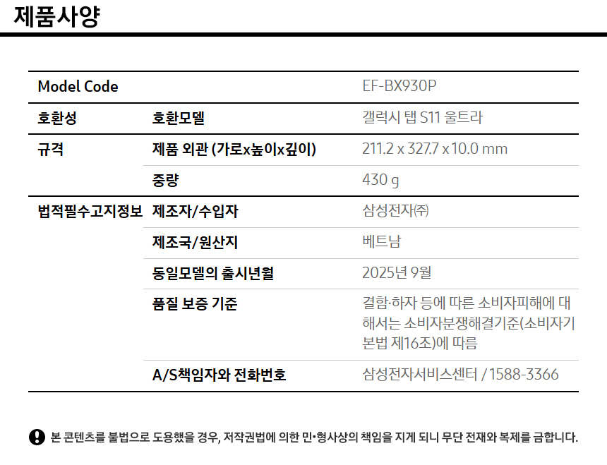 갤럭시 탭 S11 스마트 북 커버 케이스 EF-BX730