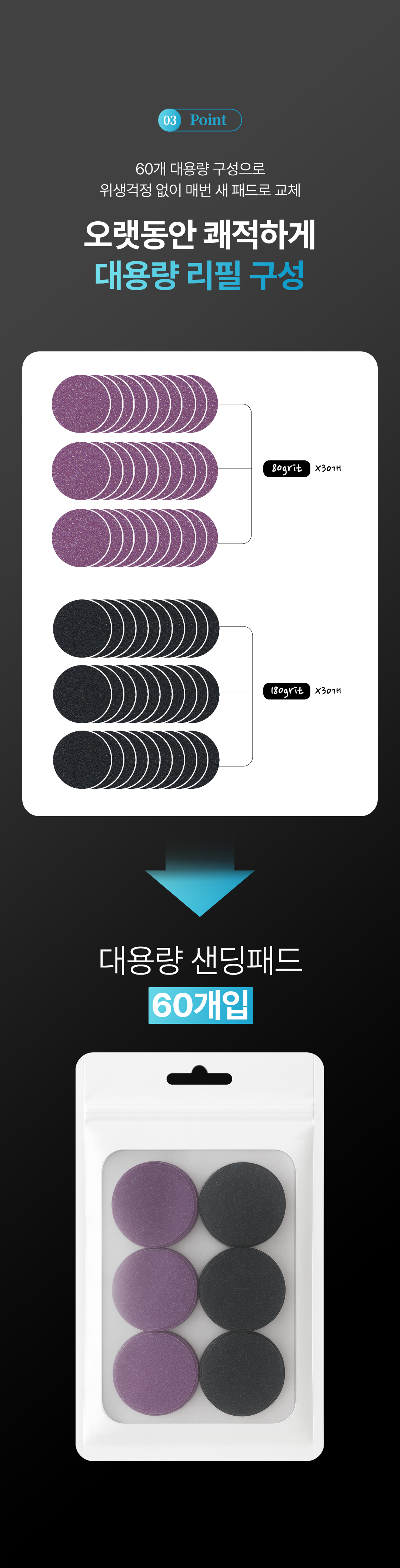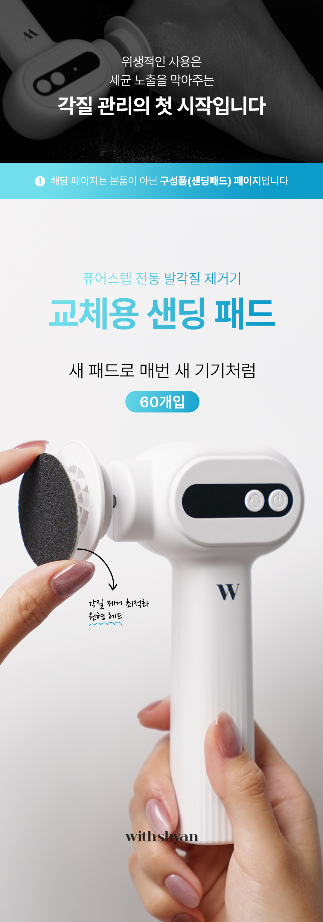 퓨어 스텝 전동 발 각질 제거기용 샌딩 패드 60ea
