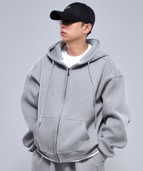 CHROME B HOODIE ZIP-UP [MELANGE GREY]