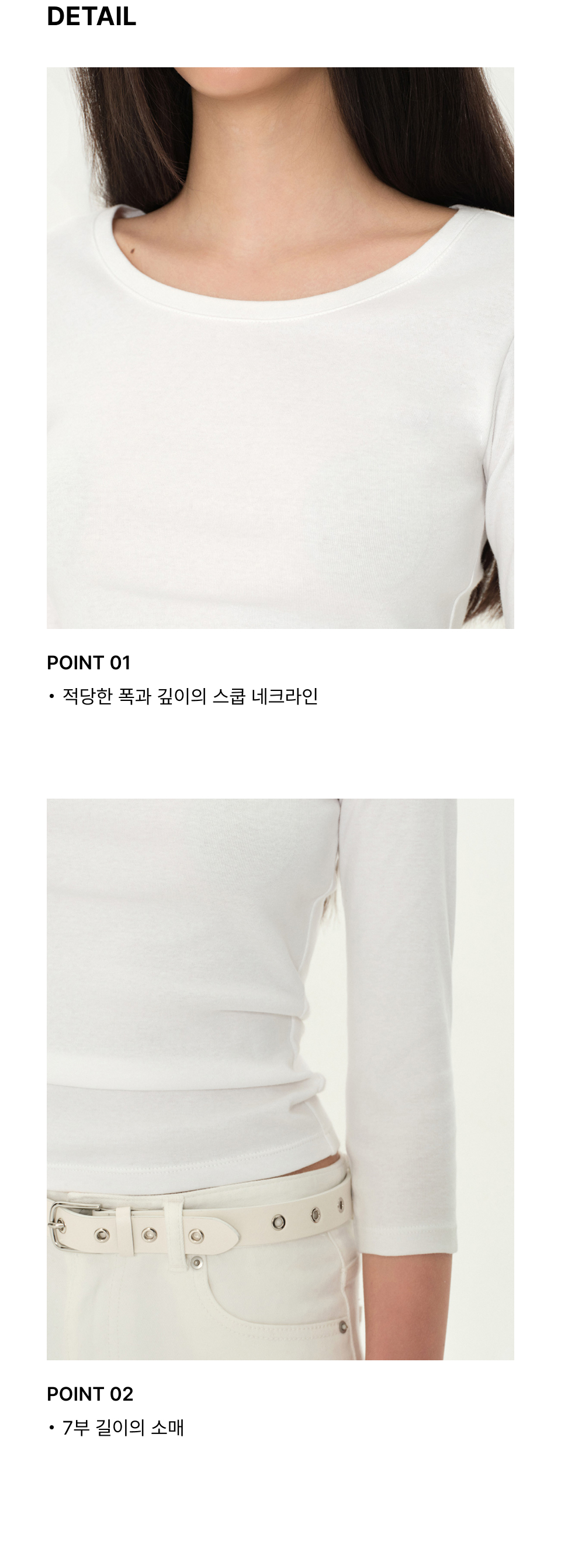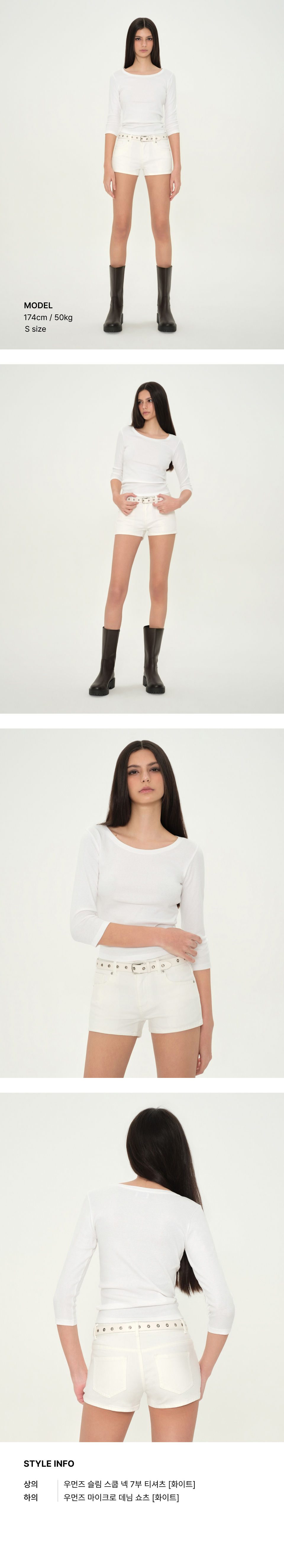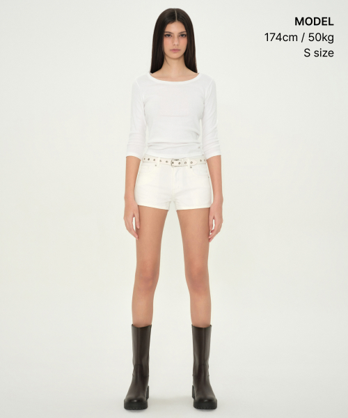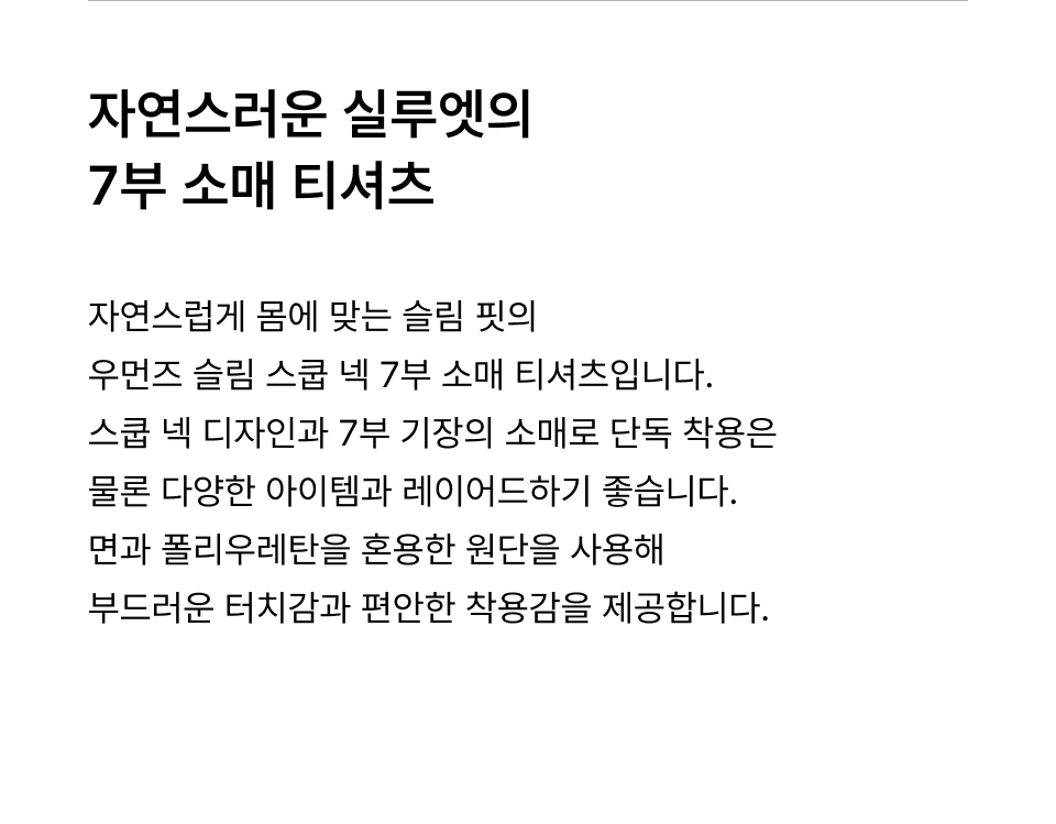 우먼즈 슬림 스쿱 넥 7부 티셔츠 [화이트]