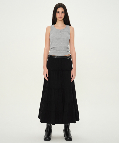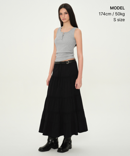 우먼즈 헨리 넥 탱크 탑 [블랙]