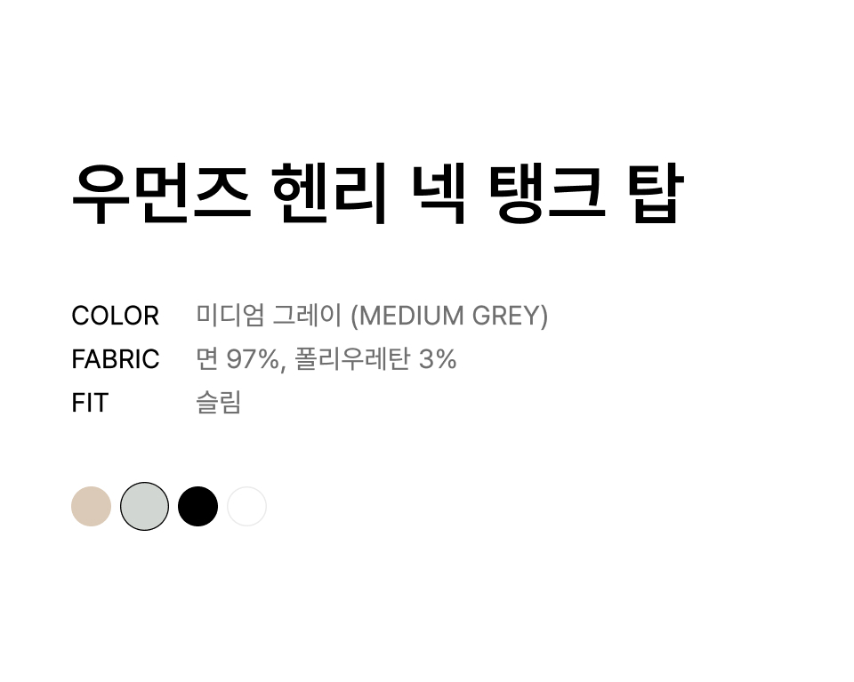 우먼즈 헨리 넥 탱크 탑 [미디엄 그레이]