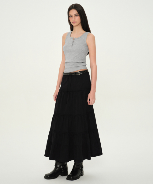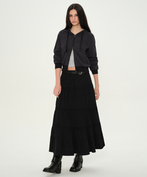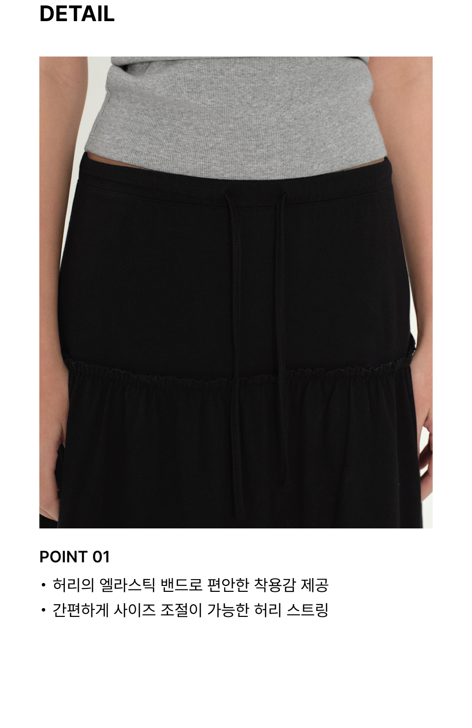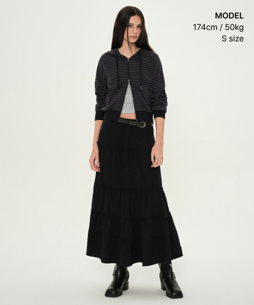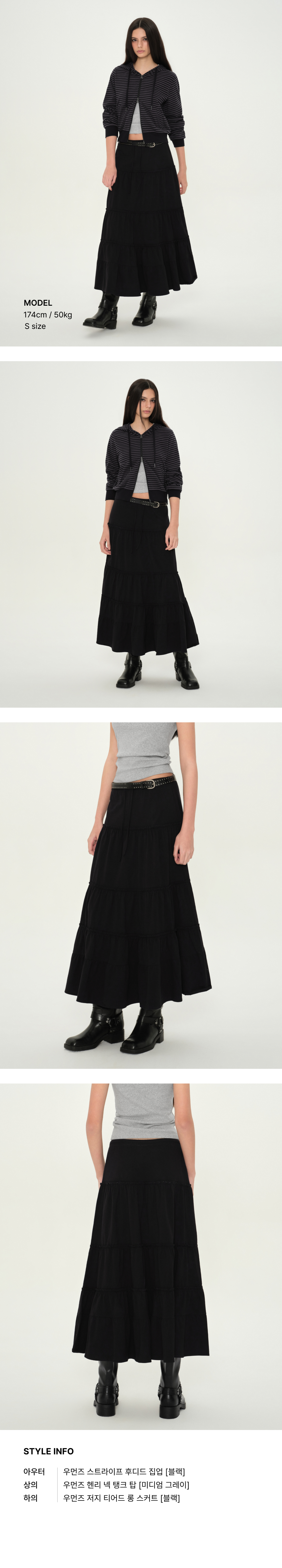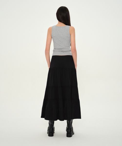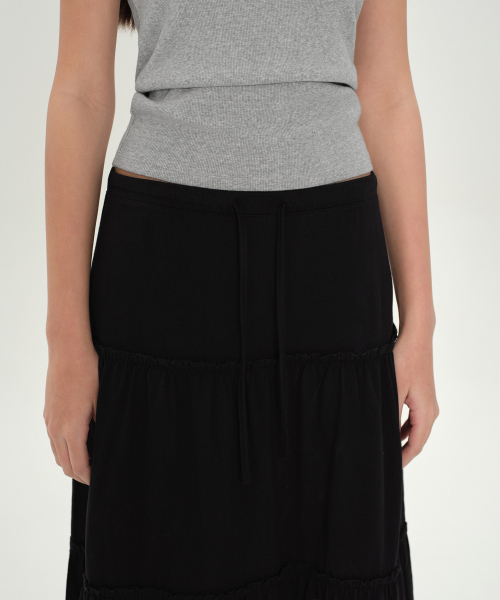 우먼즈 저지 티어드 롱 스커트 [블랙]