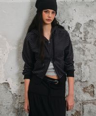 우먼즈 스트라이프 후디드 집업 [블랙]